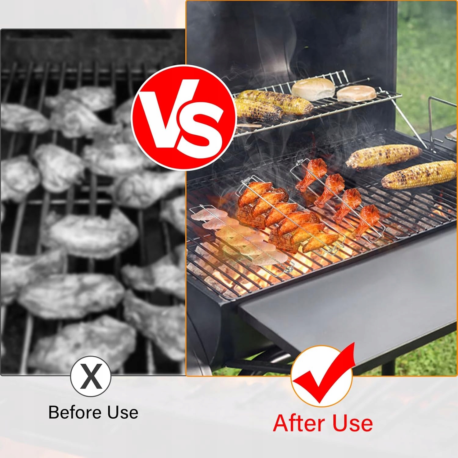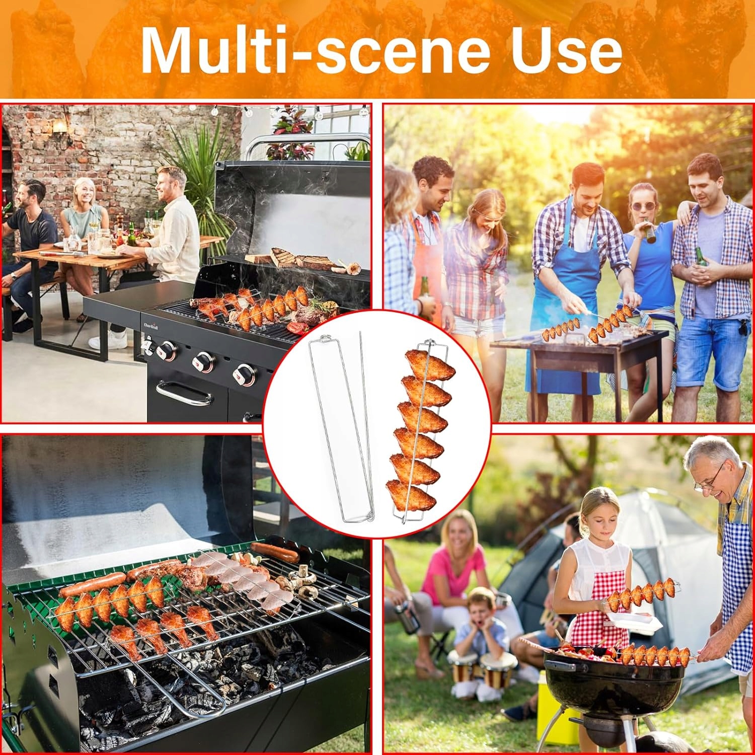 Эти многофункциональные шашлыки для грилей предназначены для переживания лет пикников на открытом воздухе, поездках на кемпинг и гриля. Чтобы нарезать и повернуть куриные крылышки на гриле. Они также отлично подходят для других мяса: куриных ног, стейков, рыбы и многих других.