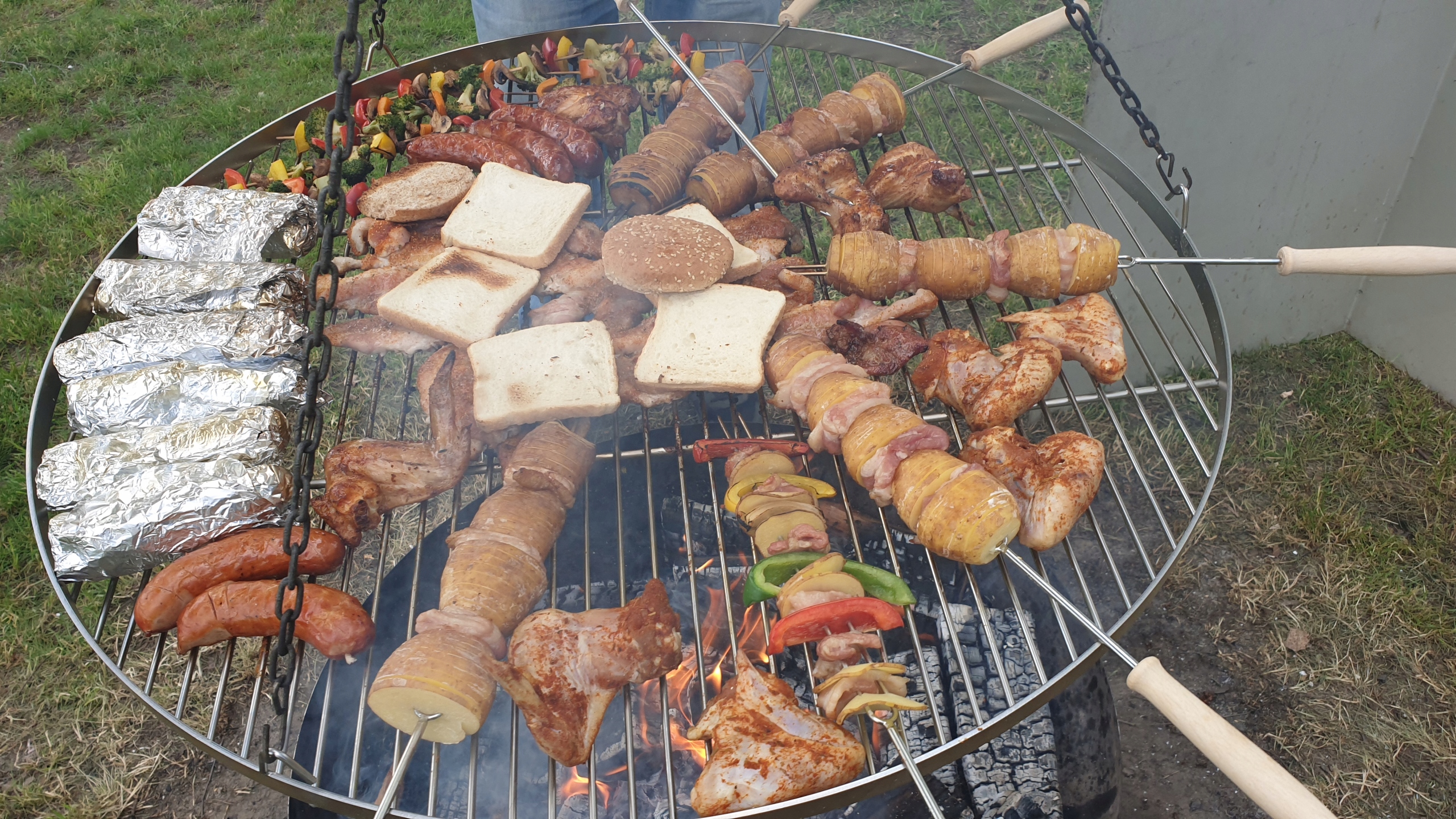Предлагаем двойные шампуры для шашлыка из мяса, овощей и других деликатесов, приготовленных на гриле. Мы также предлагаем большую вилку, доступную на другом аукционе, которая служит не только для перекладывания и переворачивания продуктов, но и для снятия продуктов с шампура.