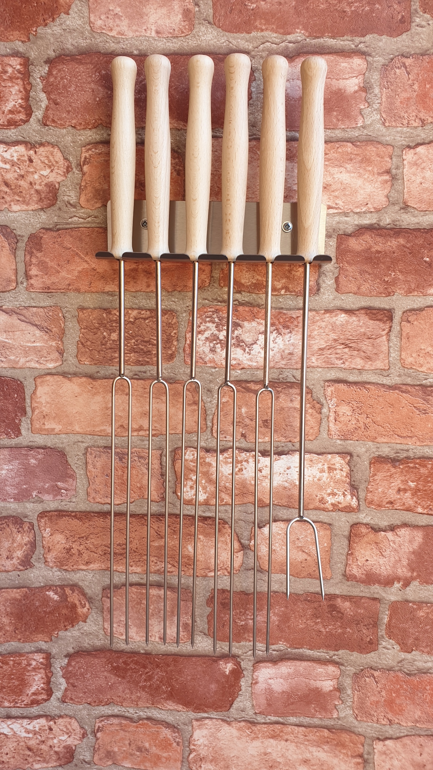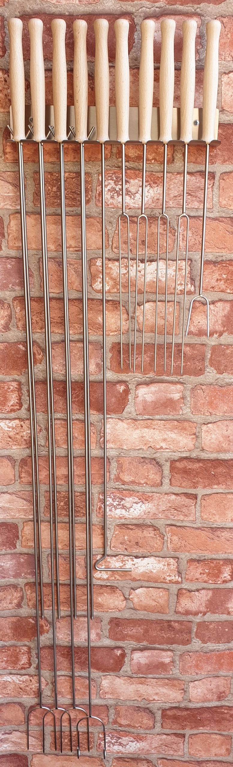 Выбирая наши шампуры, вы можете приобрести вешалку из нержавеющей стали или другие аксессуары для создания великолепного набора для барбекю.