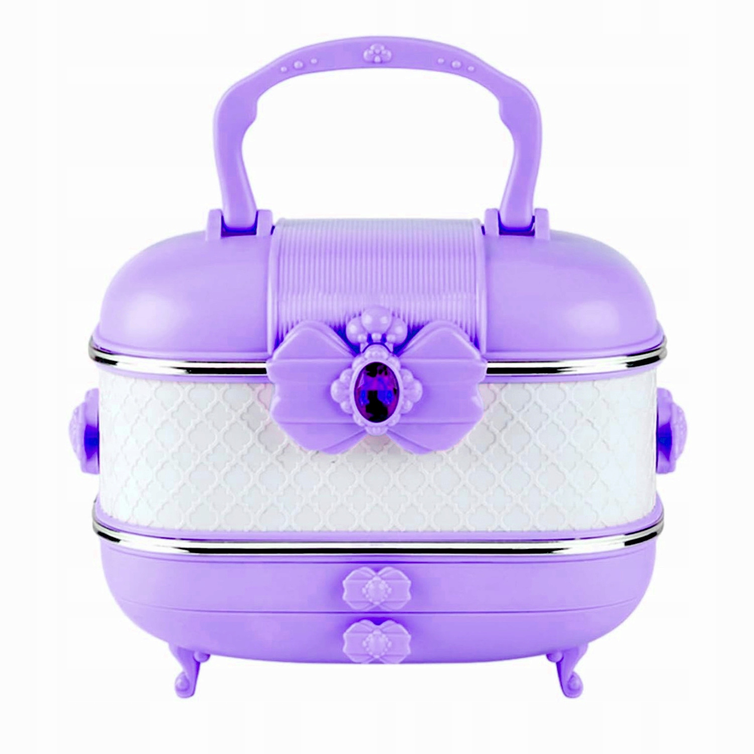 Все косметики были размещены в красивом практическом сгибании с стволом с многочисленными ящиками и полками, а также ручкой, закрытой с луком. Это решение облегчает хранение и поддержание порядка и взять косметику повсюду с вами. В багажнике есть зеркало.