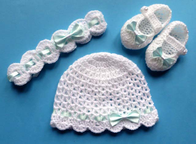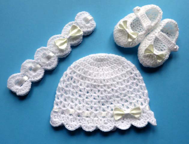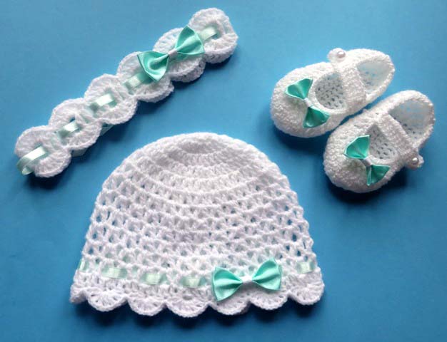 шапочки, связанные крючком, туфли, повязки на голову, галстуки-бабочки, комплекты из 2-х, 3-х предметов.