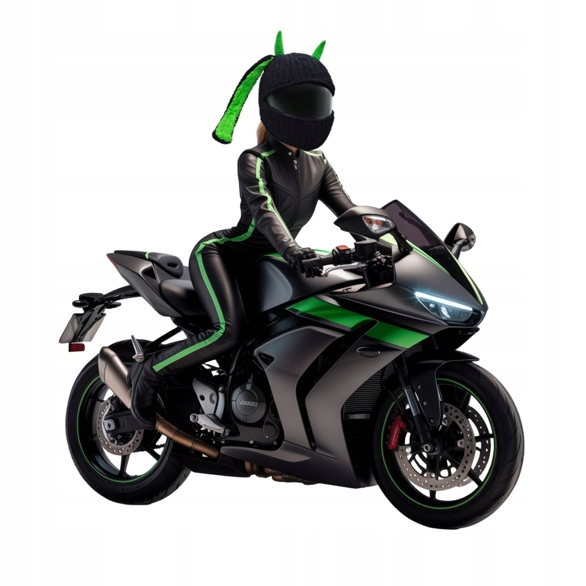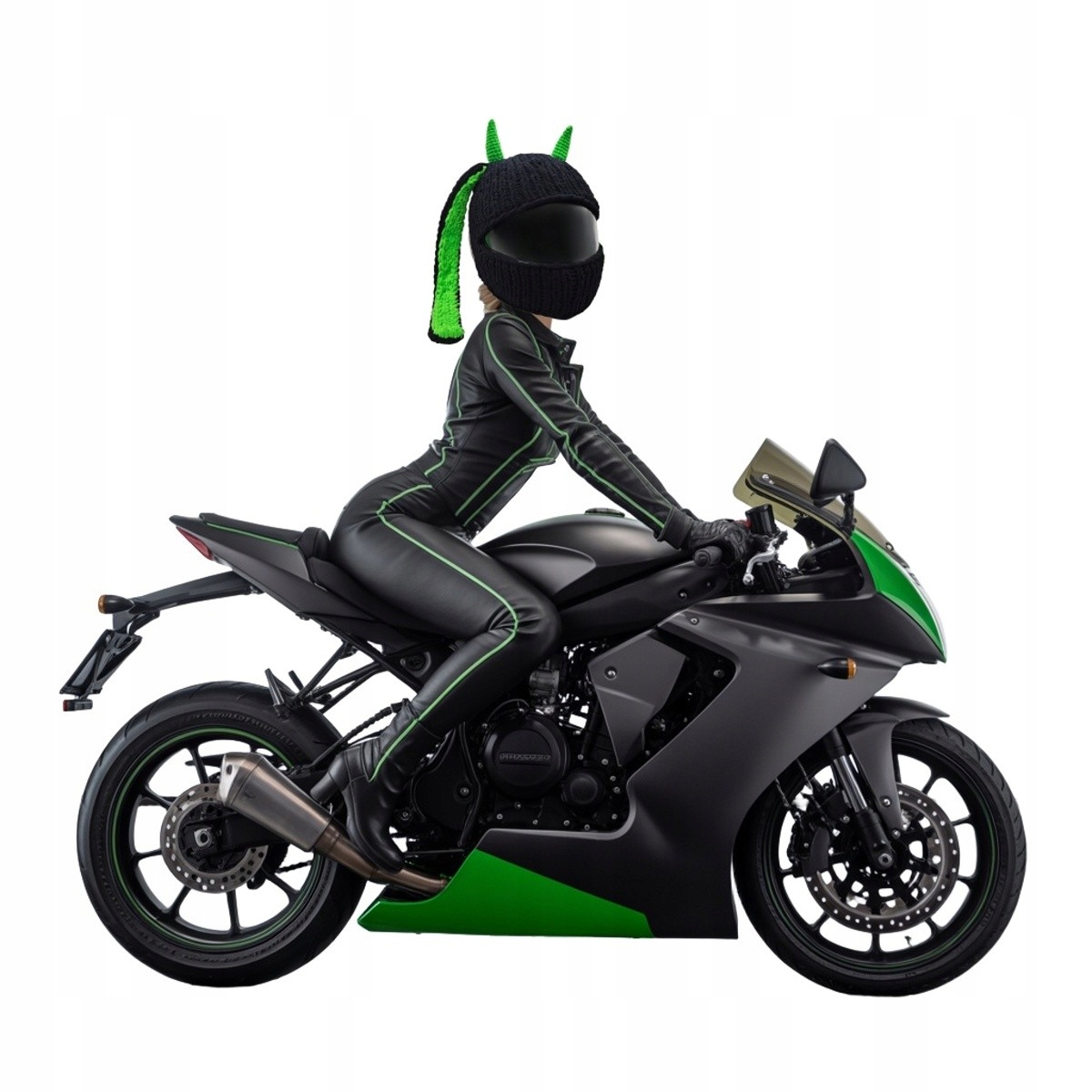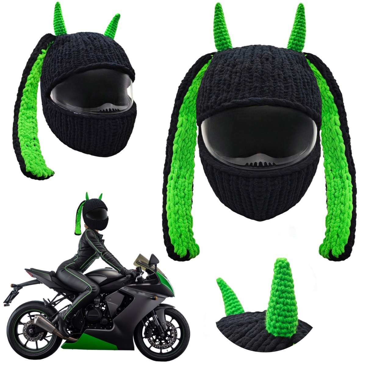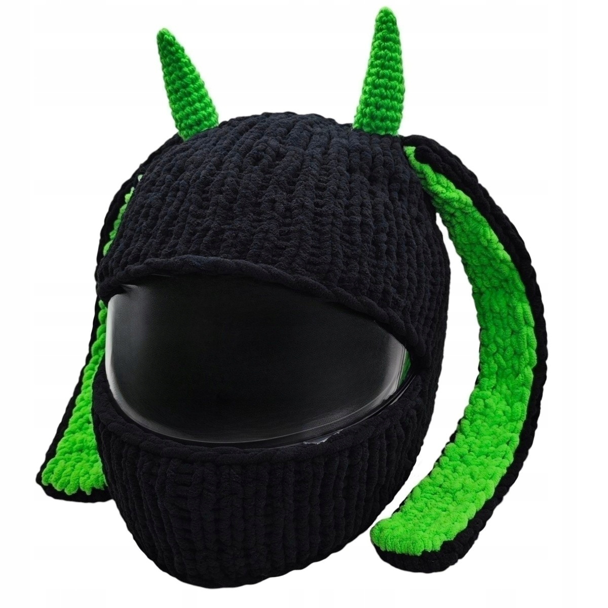 Готовы совершить революцию в своих мотоциклетных приключениях? Познакомьтесь с кепкой Wild Rider — уникальным чехлом для шлема, который сочетает в себе дикий стиль и неукротимую индивидуальность. Этот аксессуар ручной работы, созданный из качественной, мягкой и прочной пряжи, превратит ваш стандартный шлем в настоящее произведение искусства. Его характерные зеленые рога и уши, контрастирующие с темно-черным окрасом остального животного, придают ему вид, вдохновленный дикой природой и храбростью. Независимо от того, ездите ли вы по городским магистралям или исследуете бесконечные маршруты, Wild Rider обеспечит вам не только безопасность, но и уникальный внешний вид, привлекающий внимание и вызывающий восхищение.