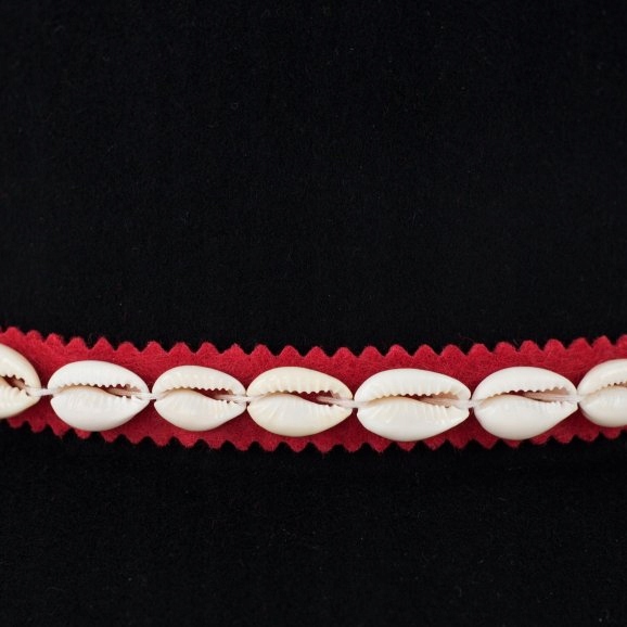 Украшена натуральным пером и лентой из ракушек.