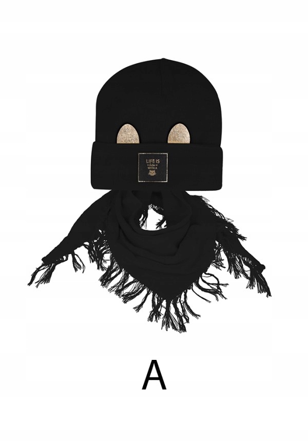На шапке пришит веселый рисунок котенка, а довершают стоячие кошачьи ушки.