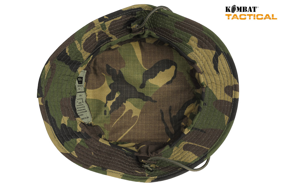 Культовая шляпа британской кухни. Глубоко модернизированный крой классической шляпы Boonie. Узкие и хорошо прилегающие поля придают шляпе неповторимый стиль. Несмотря на меньшие размеры, поля по-прежнему хорошо защищают от солнца и дождя и обеспечивают маскировку головы. Края прошиты несколько раз для получения необходимой жесткости. Шапку обшивают скотчем для крепления маски или москитной сетки. Шнурок под подбородком регулируется стопором.