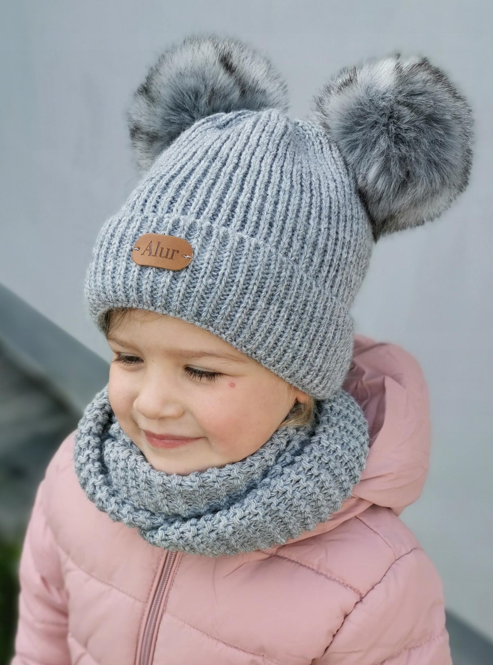Шапка с двумя помпонами с флисом цвета 3-15 лет