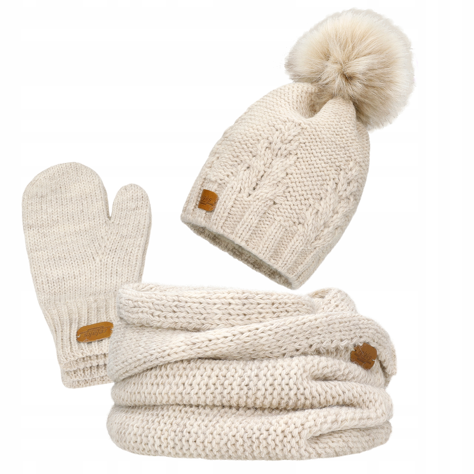 ШАПКА ЗИМОВА ЖІНОЧА ШАРФ ДИМОХІД РУКАВИЧКИ теплий КОМПЛЕКТ Бежевий RELAKS