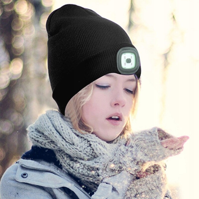 - вязаная зимняя шапка со съемным аккумуляторным светодиодным фонариком