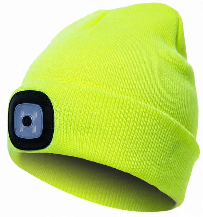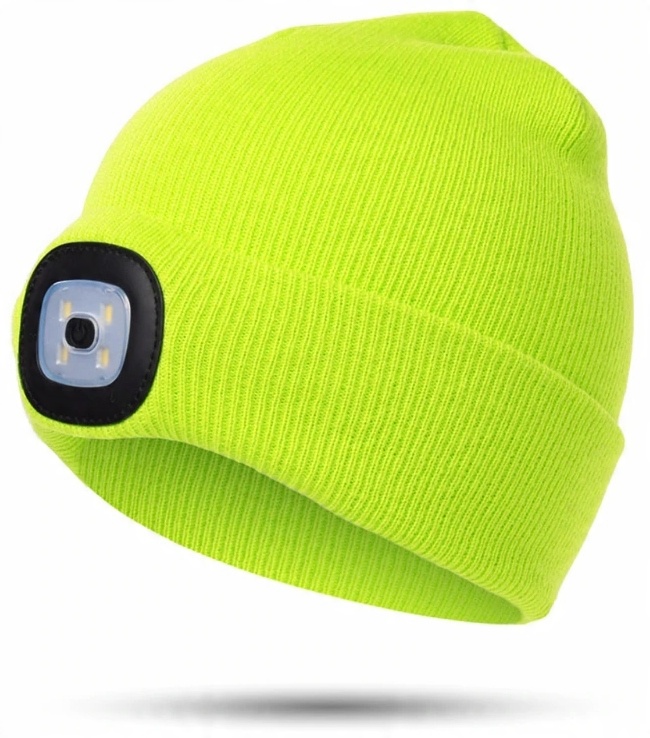 Вязаная зимняя шапка со съемным перезаряжаемым светодиодным фонариком.