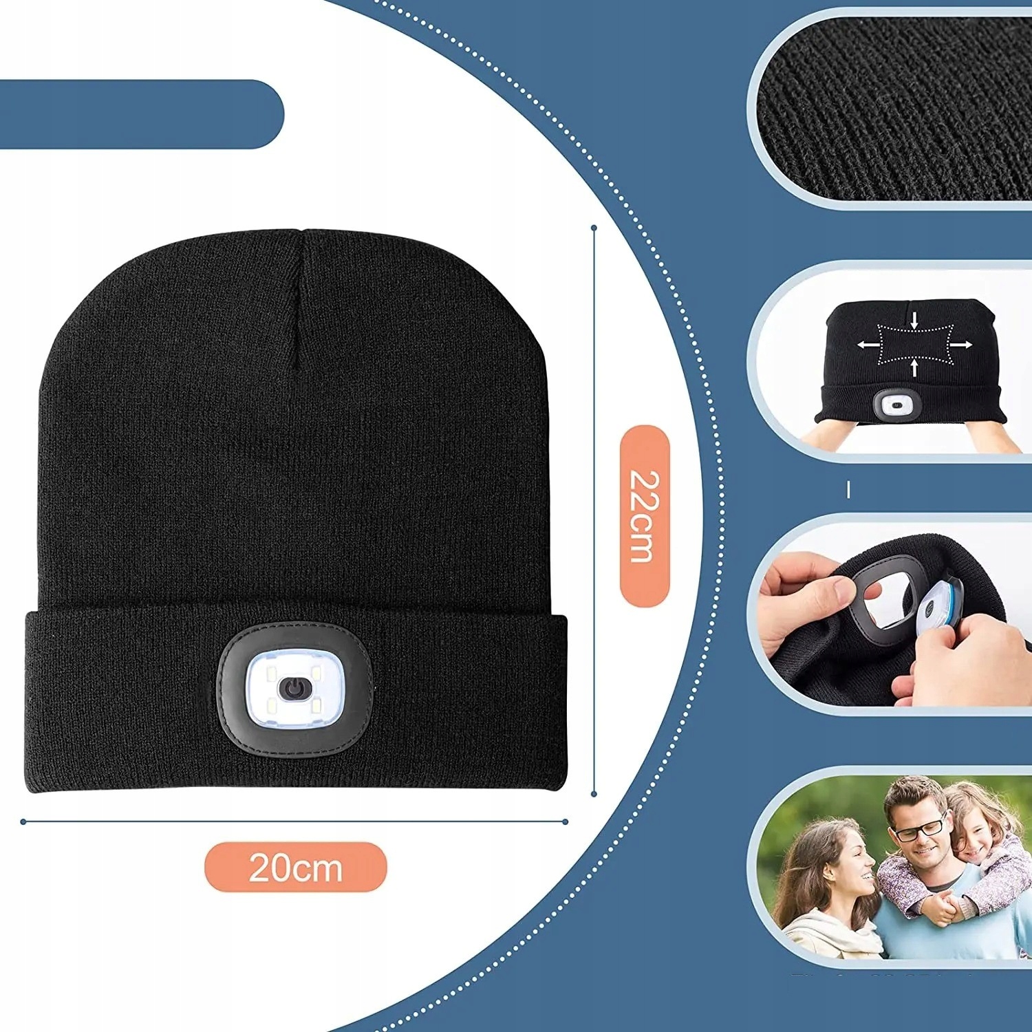 ЗИМОВА ШАПКА зі світлодіодним ФОХАРНИКОМ USB зарядка