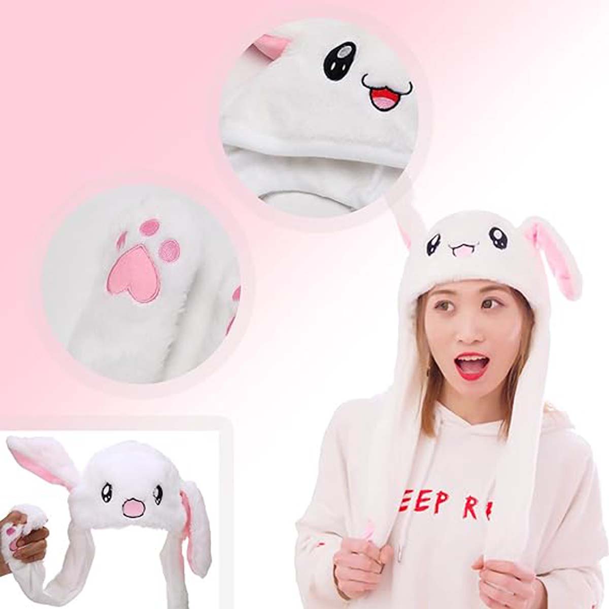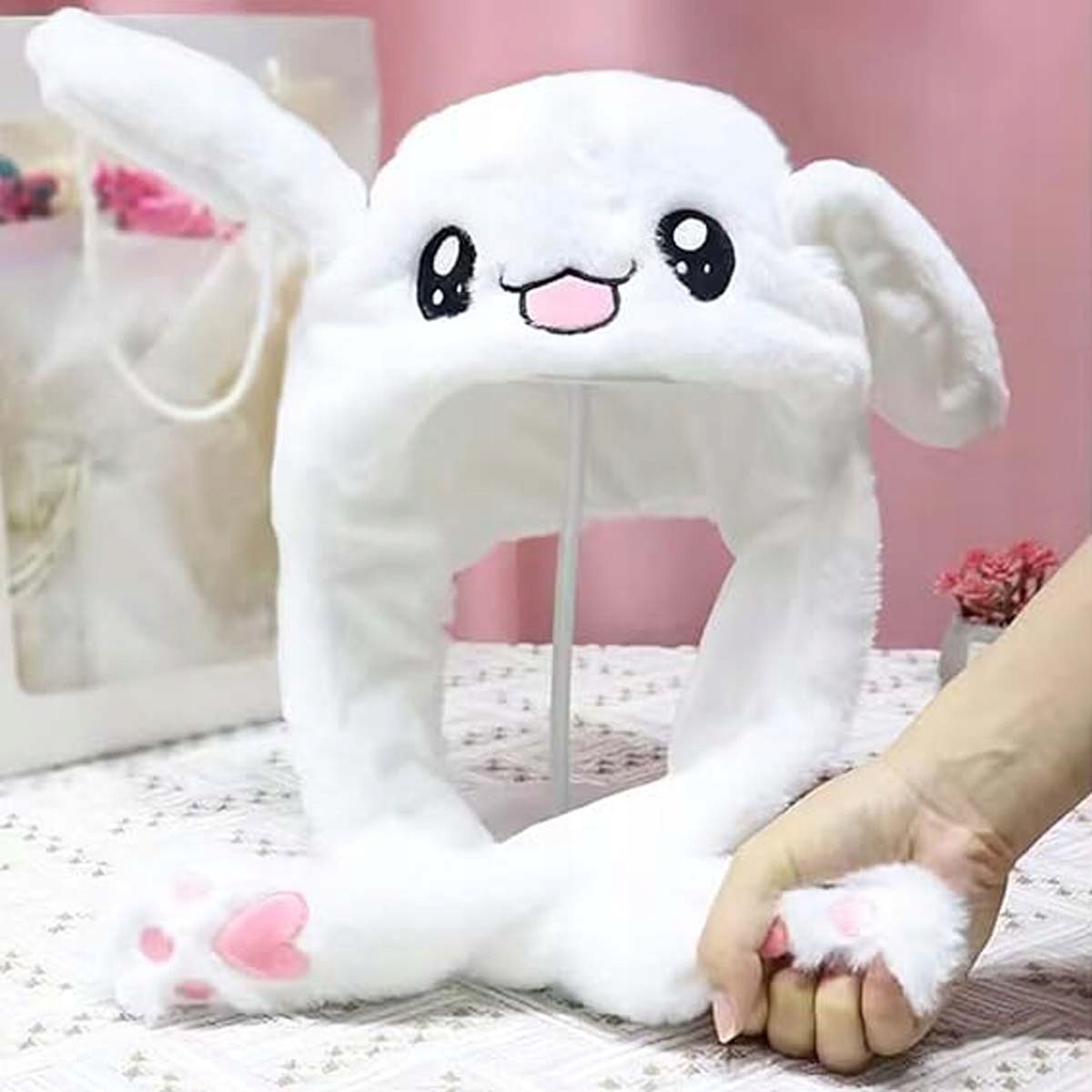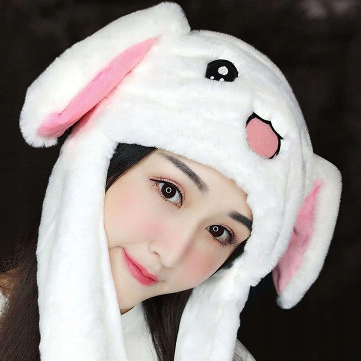 【Высочайшее качество】 Шапка прыгающего кролика с ушками изготовлена из высококачественного короткого плюша и выглядит как милый плюшевый кролик. его удобно носить на ощупь.