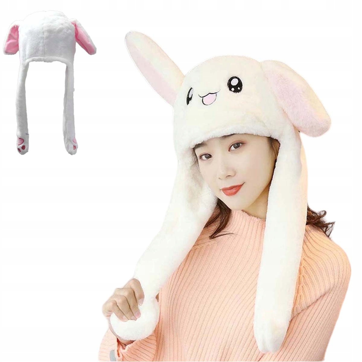 шапочка, рухливі вушка, плюшеві лапки кролика, мила плюшева шапочка тварини