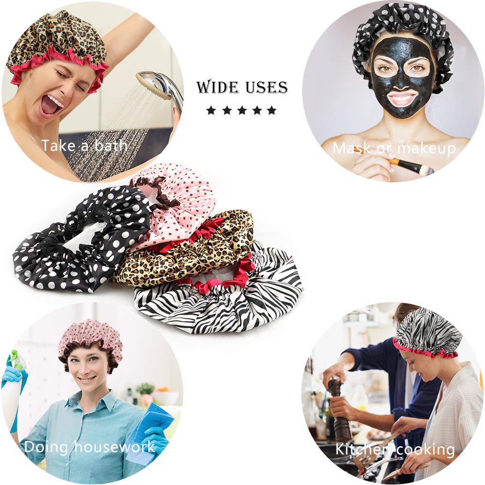 Эти типы водонепроницаемых шапочек для волос подходят для принятия душа, приготовления пищи и посещения СПА. Они хорошо защищают волосы, а также их можно использовать для укладки волос во время макияжа, умывания лица и т. д.