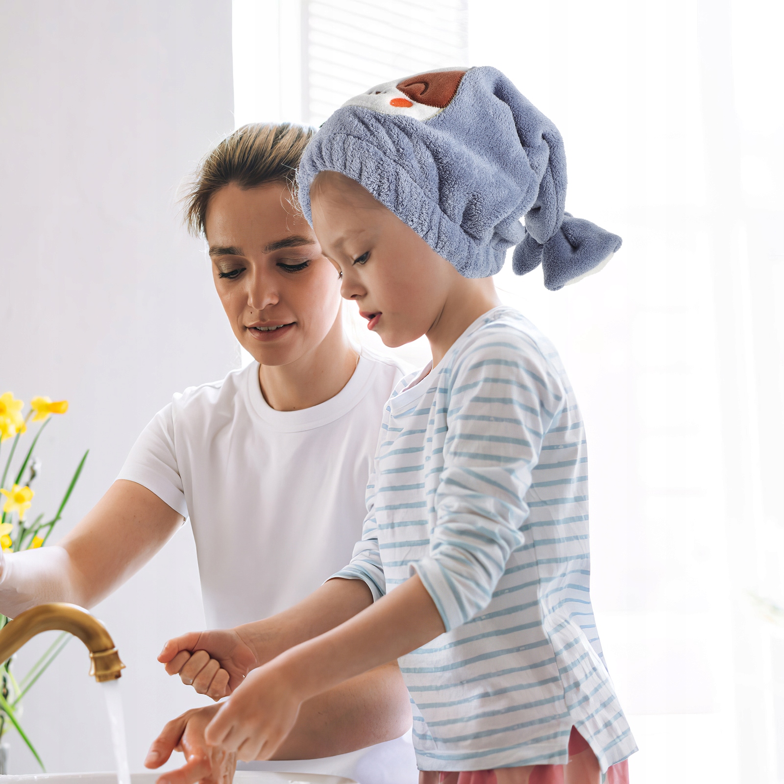 ✅Вы можете поделиться этим полотенцем для волос со своими детьми, оформленным в мультяшном стиле, оно завоюет их любовь.