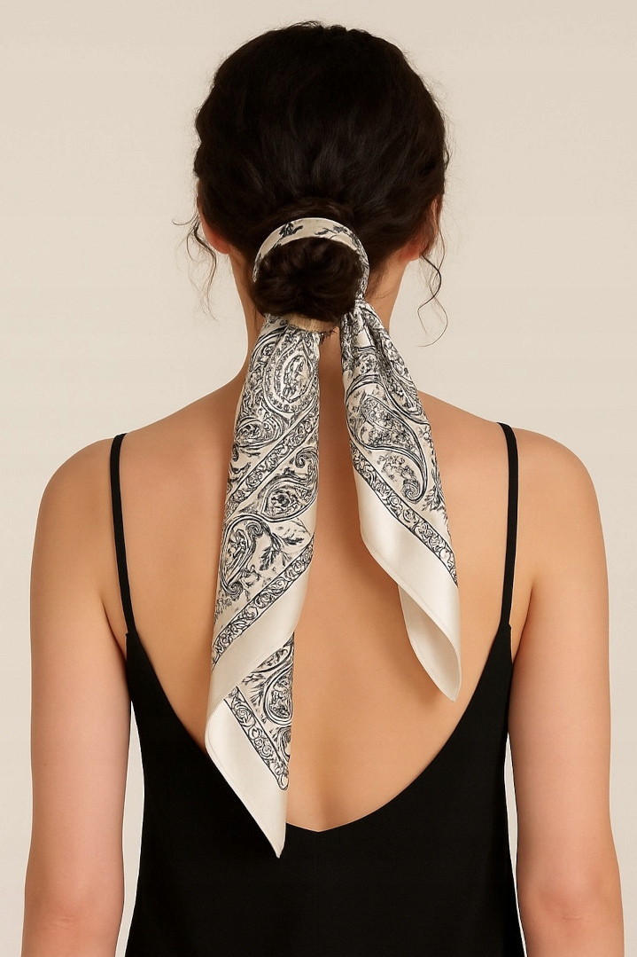 Шалка для шарфы кремовый шаль элегантный 100% шелк в Пейсли 68 х 68 см