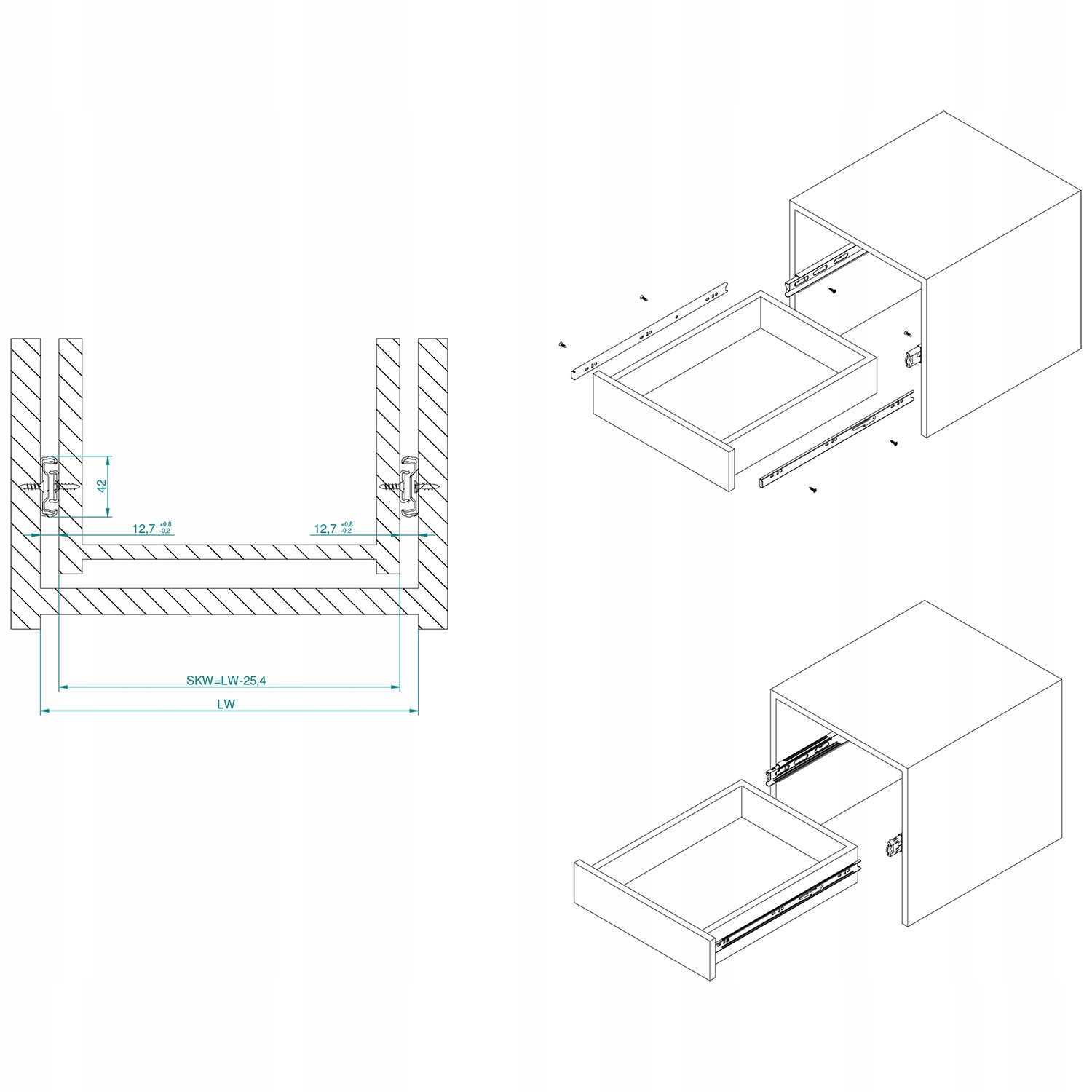 Шарикопідшипникові направляючі для ящиків H-45 L-500 30кг ПОВНА тяга польський виробник
