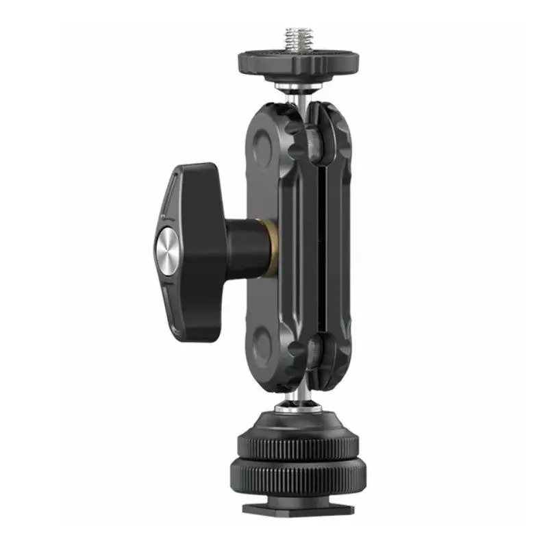 Многофункциональная артикулированная магическая рука ulanzi r098 с длиной 10 см , изготовленной из света и прочного алюминия . Он заканчивается, с одной стороны, со стандартной фотографической нитью 1/4 ' и креплением холодной ногой (холодная обувь) с другой. Это универсальный аксессуар для фото-видео, который мы можем легко установить непосредственно в гнезде камеры, а также в различных типах ручек, монтажных рельсов или клетки операторов. два шариковые подшипники, благодаря которому каждый элемент может быть независимо повернут с 360 ° . Подшипники блокируются одновременно благодаря блокады System - широкий и удобный винт позволяет немедленно обездвигать целое. Мужская сборка сборки 1/4 ' делает практическое аксессуар из R098, на котором вы можете разместить светодиодную панельную лампу, внешний направленный микрофон или небольшой монитор предварительного просмотра. Максимальная подъемная способность ручки составляет 1 кг . Вращение каждой головки на 360 °