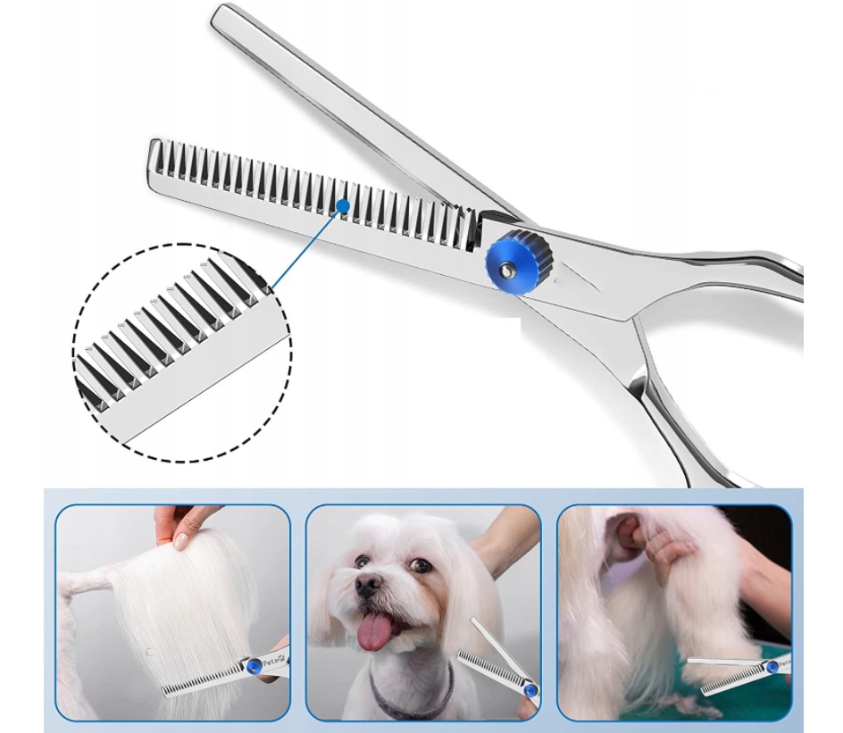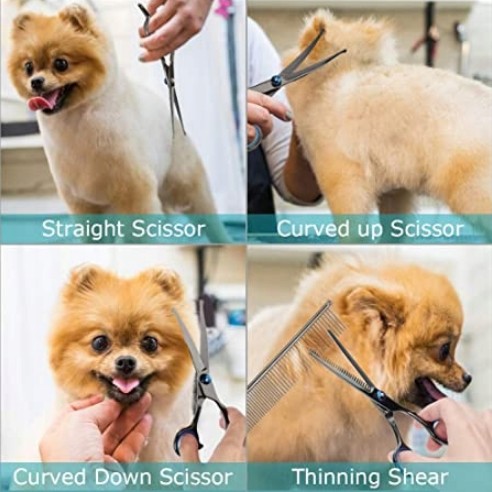 - 【Высококачественные ножницы для парикмахерской для собак】 Эти ножницы для собак для собак сделаны из высококачественной нержавеющей стали. Прочная, отличная точность и резкость, подходящие для ухода за многими животными, просто создайте каждую прическу для вашего прекрасного питомца. Клинок ножниц очень гладкий, острый и долговечный, он не ржавеет. Это уменьшает вероятность того, что животные волосы будут ранены, натягивая, и делает вашего питомца наслаждаться счастливым процессом ухода