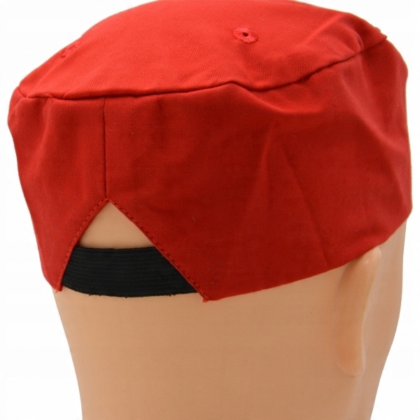 Шляпа повара британской армии красного цвета. В верхней части имеется пять отверстий для обеспечения достаточной вентиляции воздуха. Он оснащен эластичной лентой сзади, благодаря чему лучше прилегает к голове пользователя. Новый продукт.