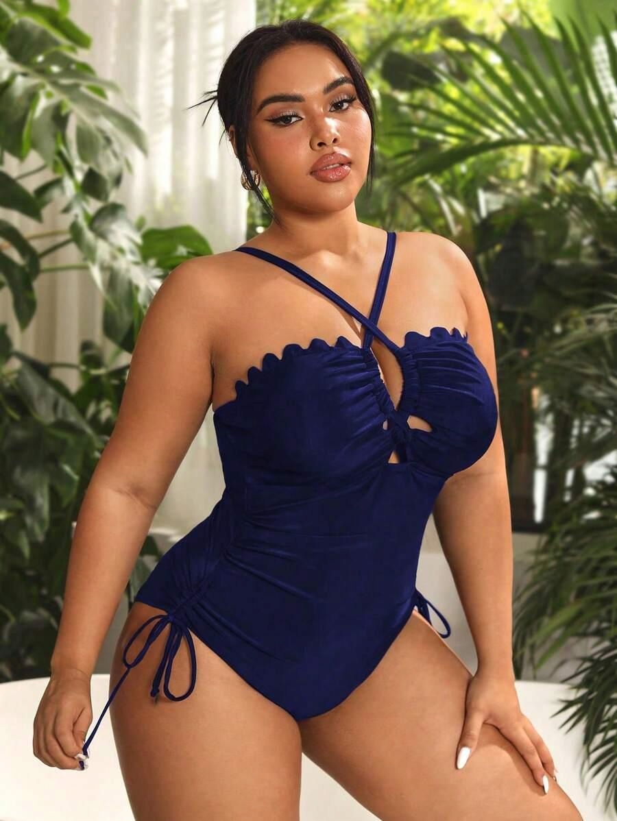 Shein 46 Navy Blue -One -Piece Swimsuit на ремешках Sheip 46