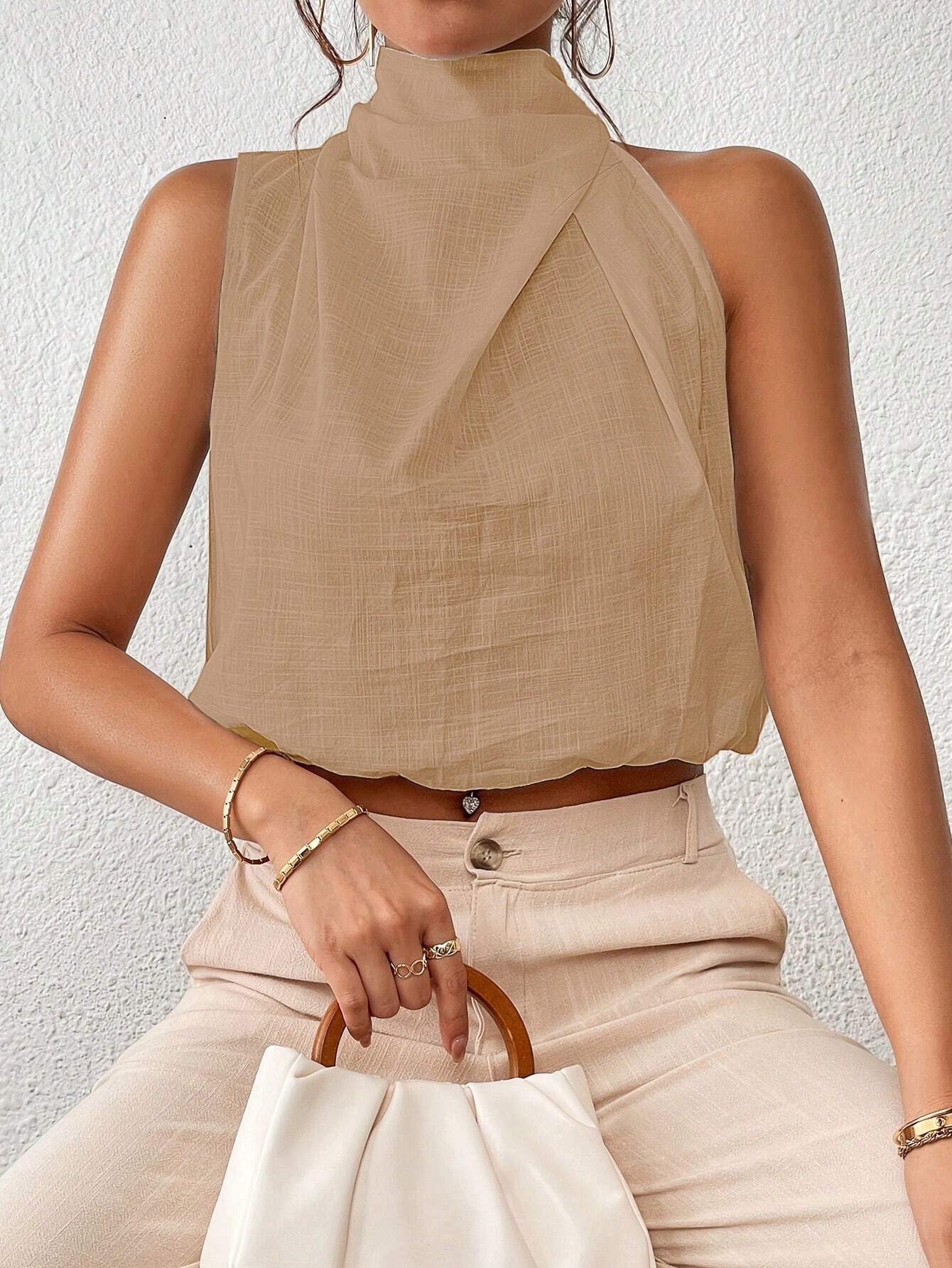 Бежевый топ без рукавов (L)