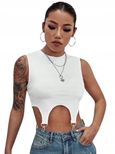 SHEIN БЕЛЫЙ БЕСШОВНЫЙ ТОП С ДЕКОРАЦИЕЙ НИЗУ, БЕЗ РУКАВОВ 36 1ED