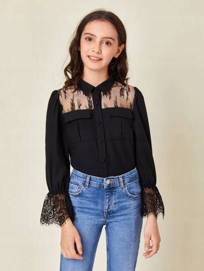 SHEIN ЧЕРНАЯ КРУЖЕВНАЯ РУБАШКА ДЛЯ ДЕВОЧКИ R140 Q373083