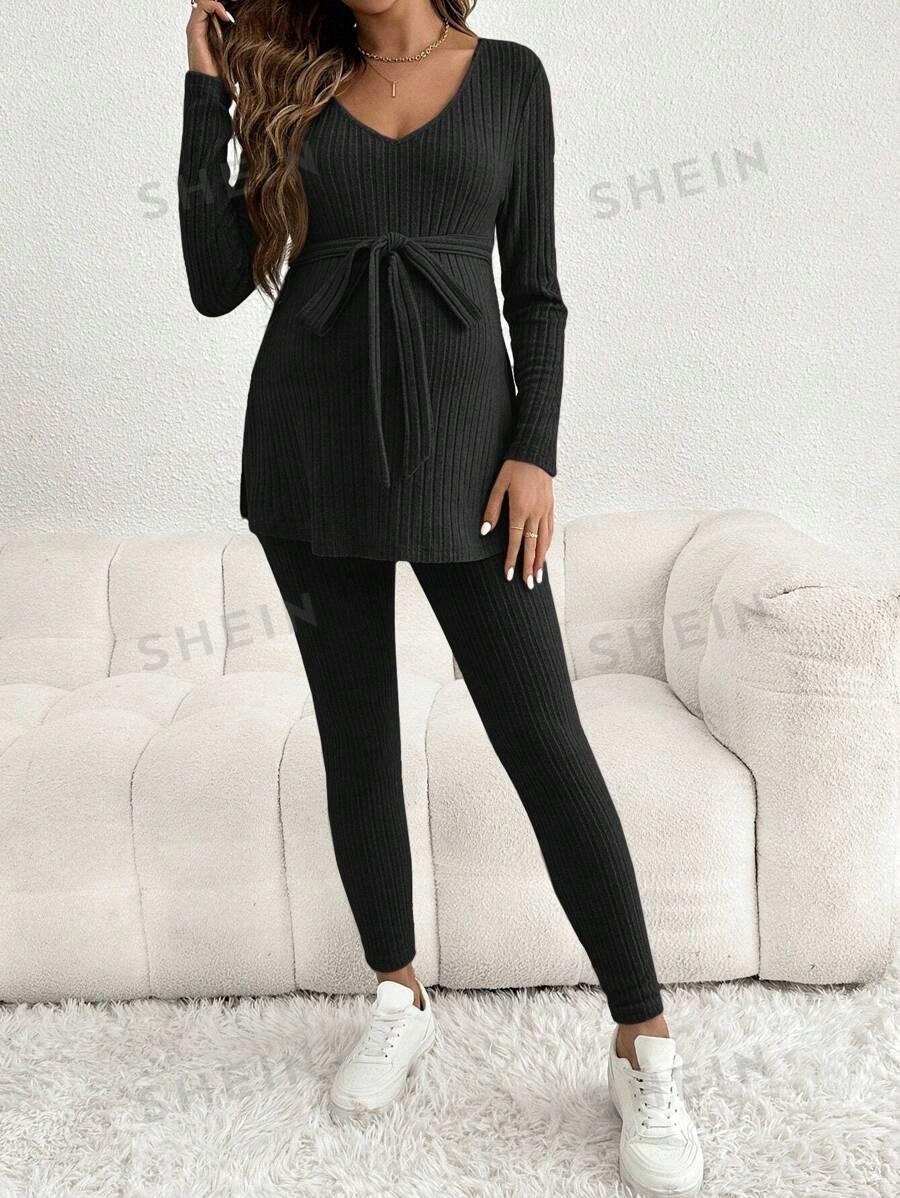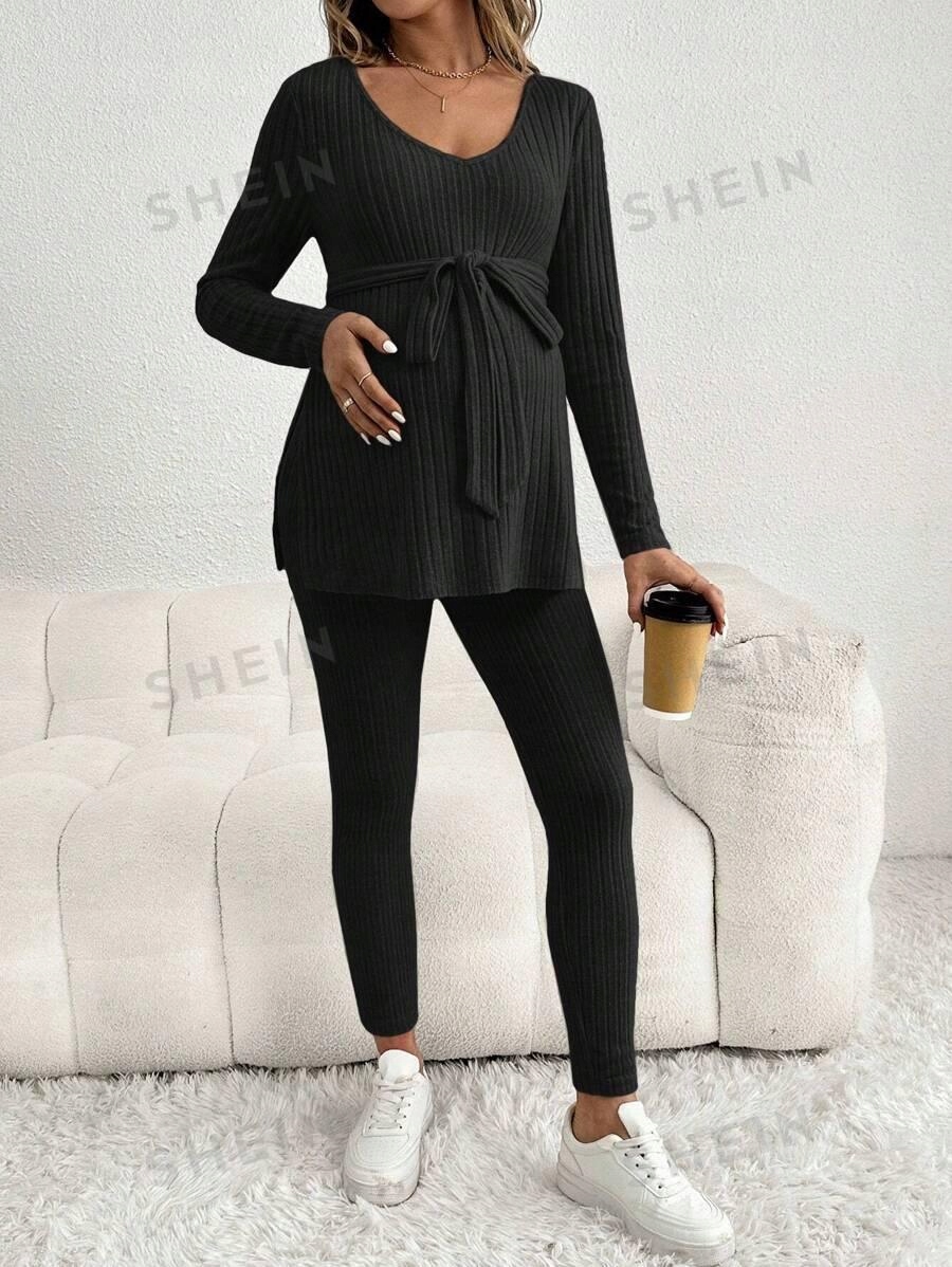SHEIN ЧЕРНЫЙ ТРИКОТАЖНЫЙ КОМПЛЕКТ ДЛЯ беременной БЛУЗКА БРЮКИ LOR S04__XL