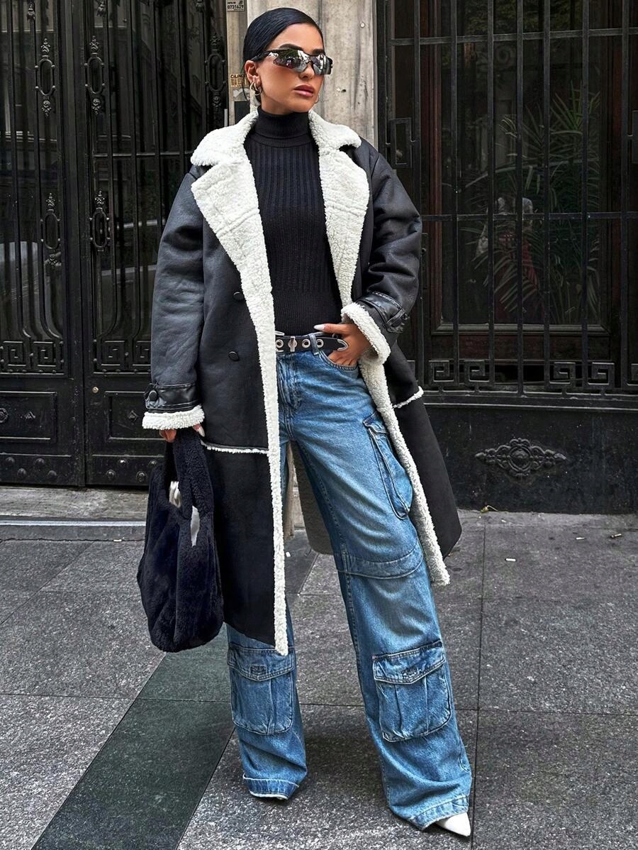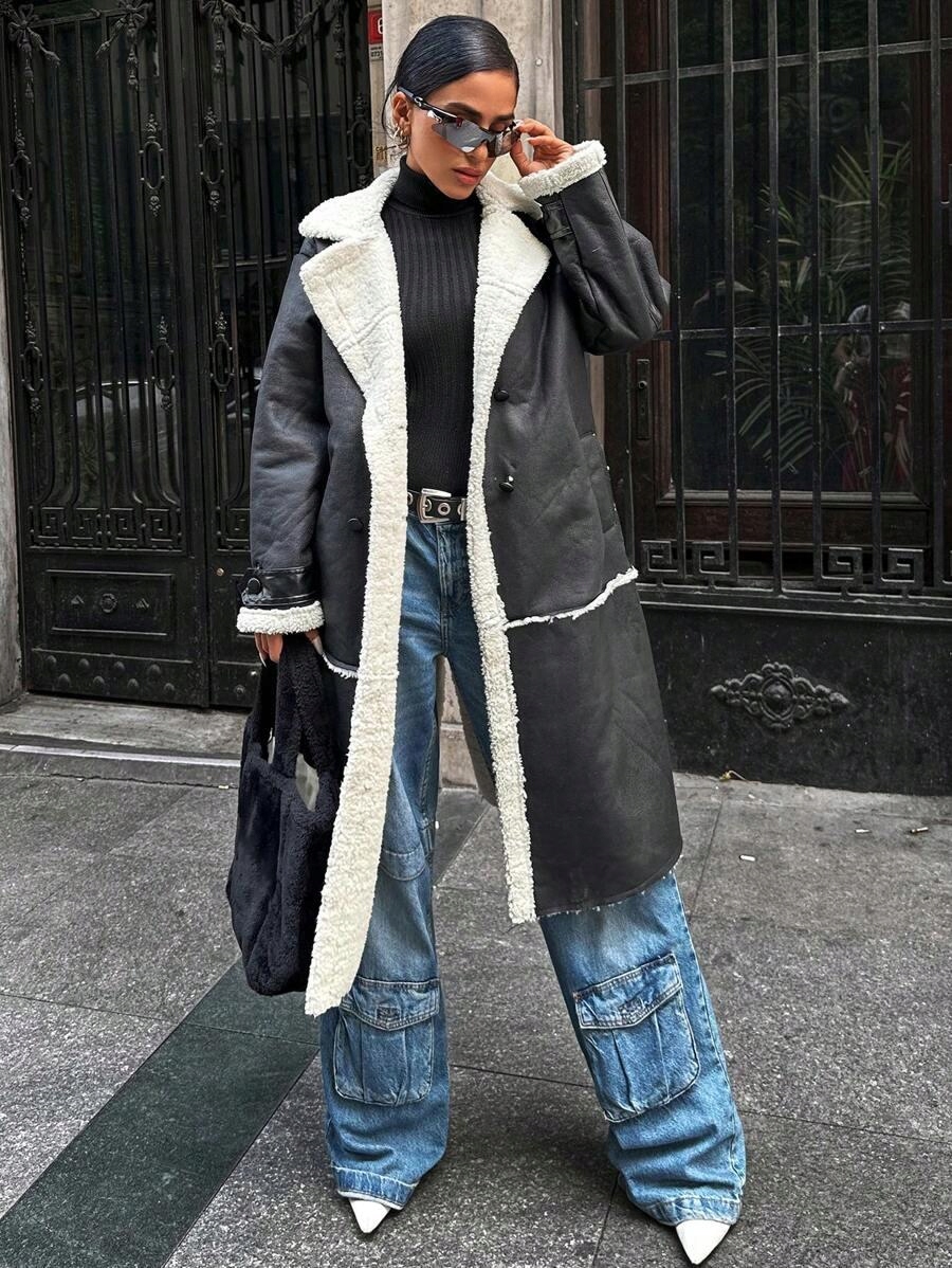 Shein Double -Crisched Pater изолированное пальто овчины (39) M Fay Ku237