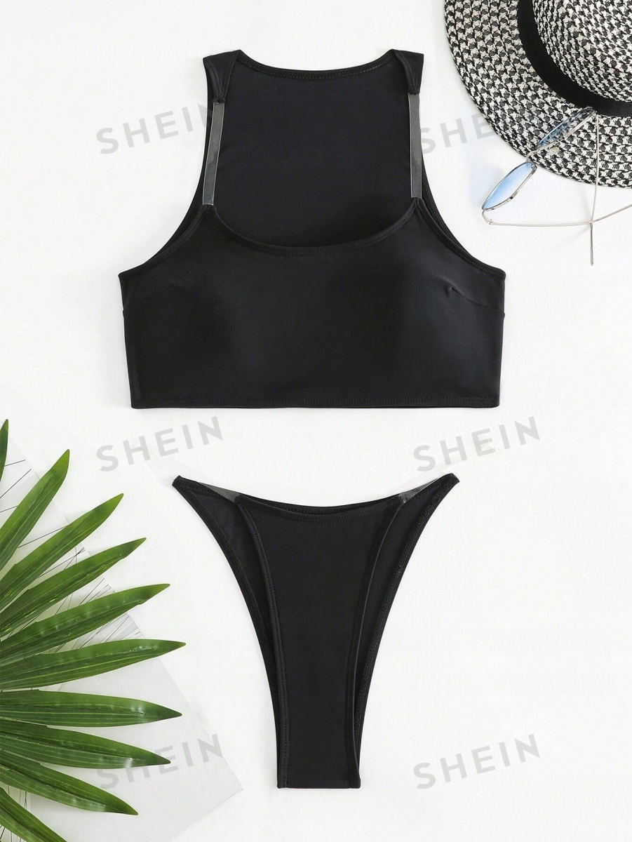 Шейн -два -купальные купальники черные прозрачные полосы M 979