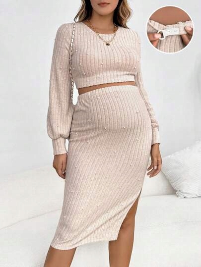 SHEIN KOMPLET DLA KOBIET W CIĄŻY BEŻOWY 36 ŁŁB