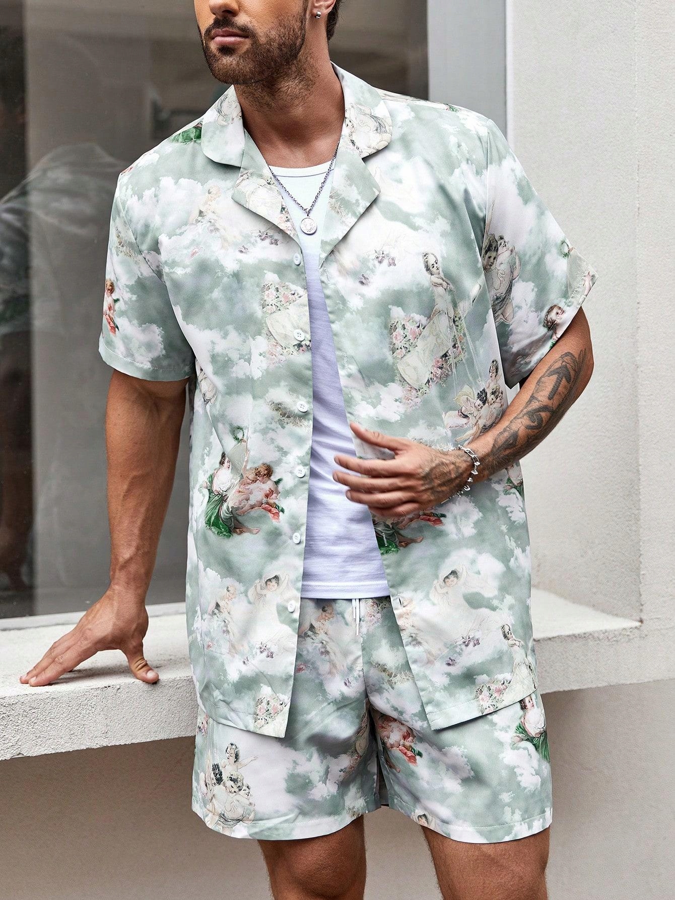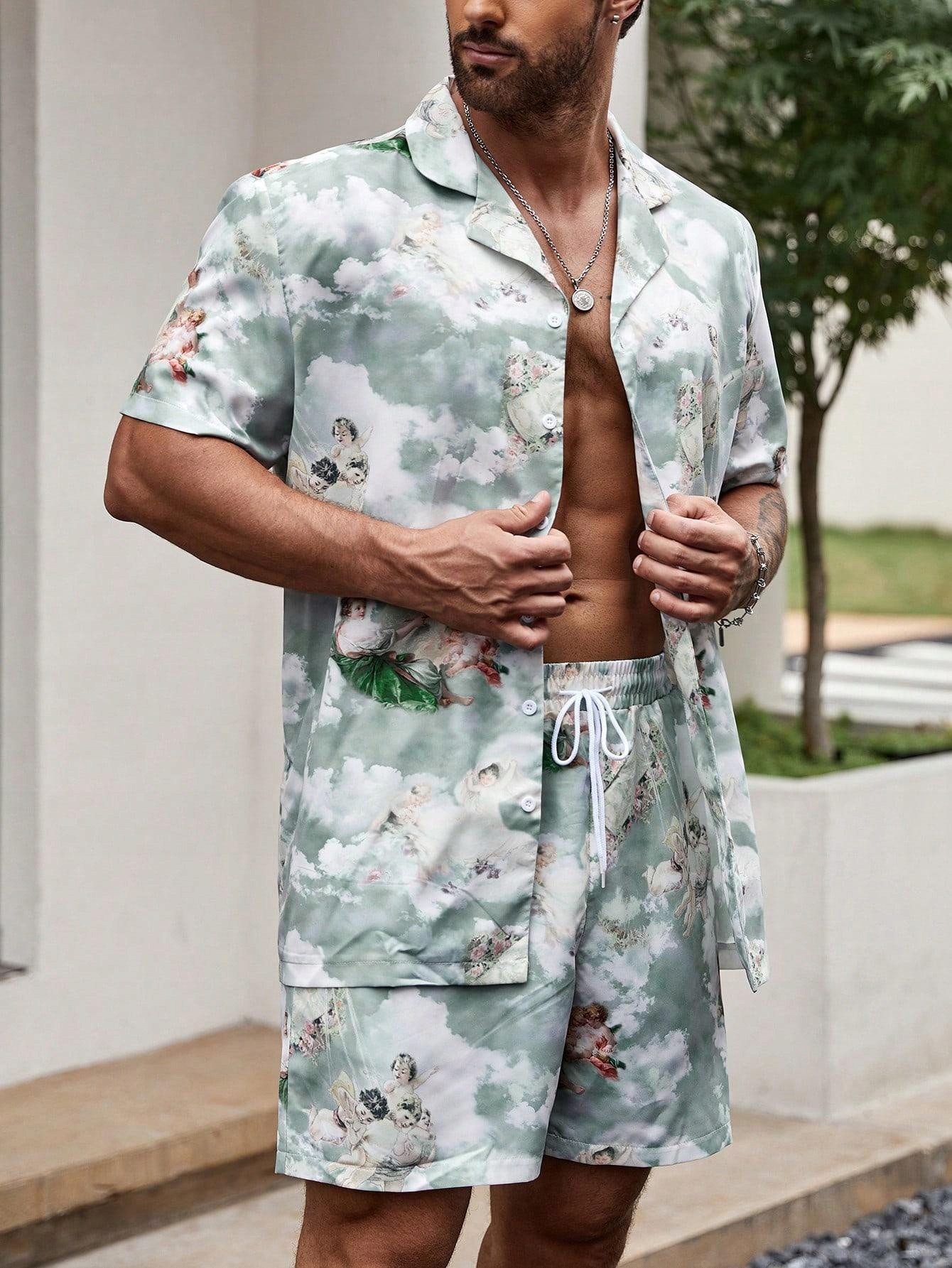 SHEIN KOMPLET KOSZULA KRÓTKI RĘKAW SPODENKI WZÓR NVB NI3__M