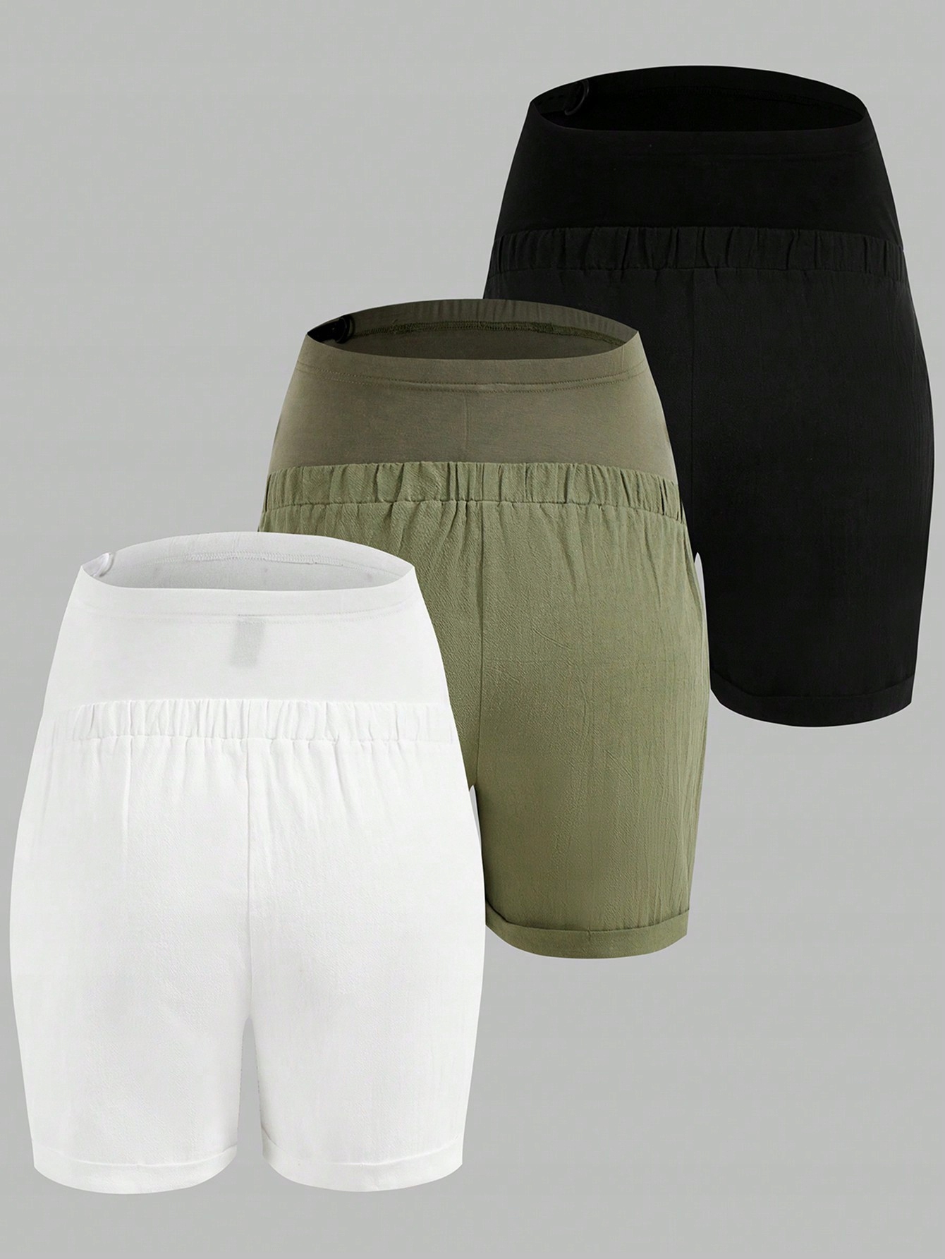 SHEIN Однотонные шорты для беременных с карманами и шнурком, 3 шт.