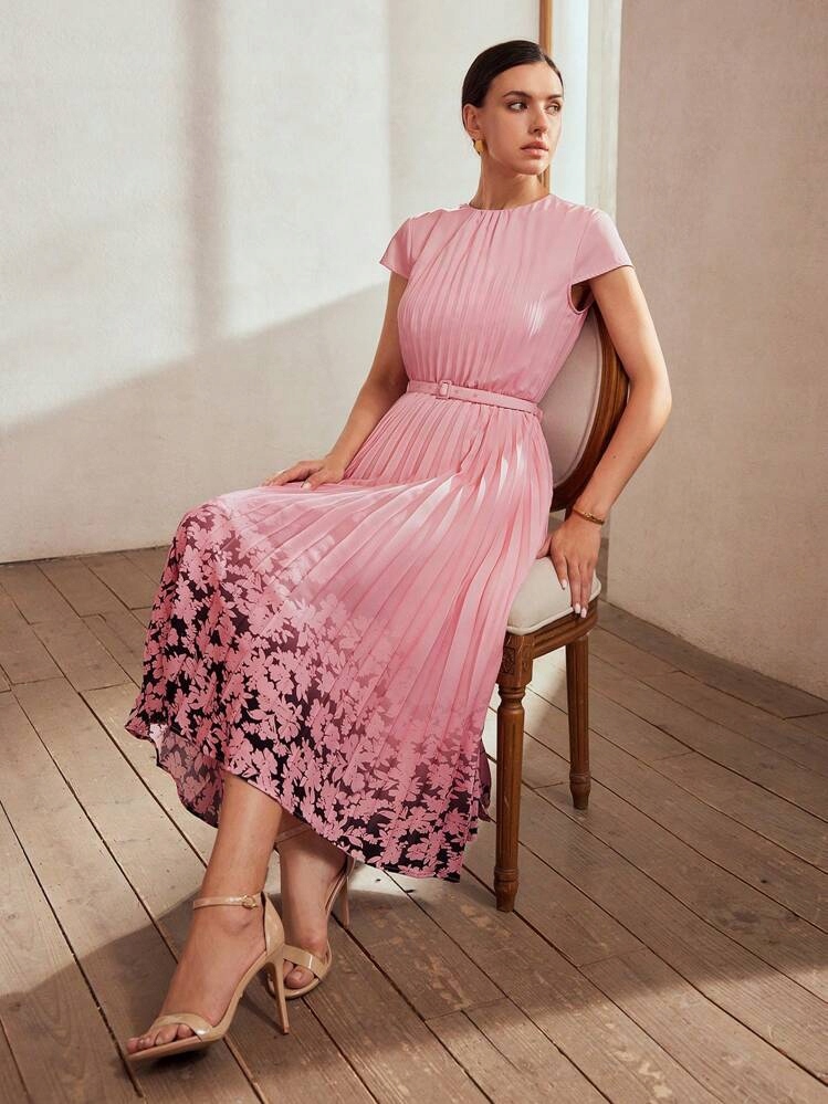 Это очаровательное розовое платье имеет отчетливый цвет и красивые складки, что придает ему нежный очарование. Он отлично смотрится в сочетании с ремнем, а короткие рукава придают ему свежесть.