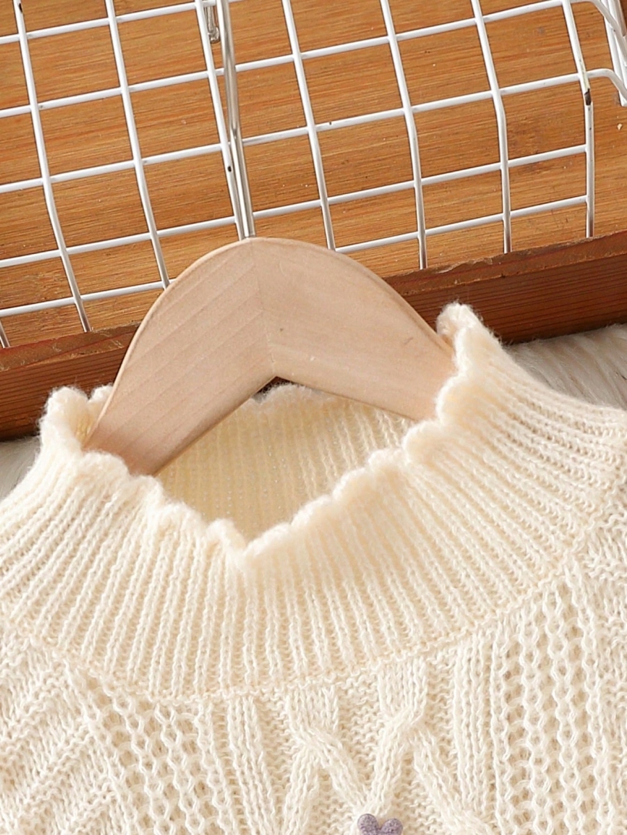 Shein Sweater Girlish Color Ecru Purple Frill Flowers 110 313