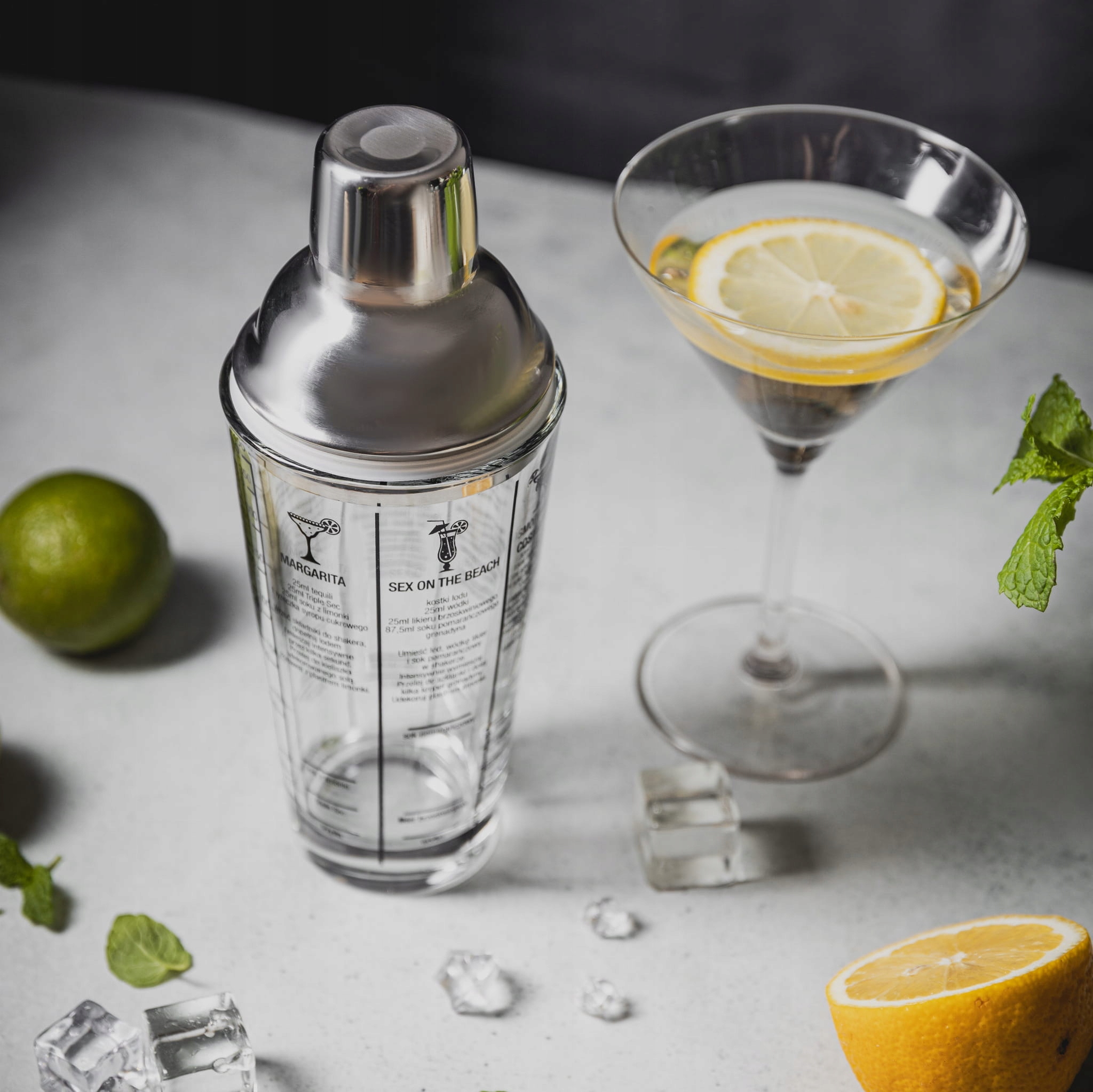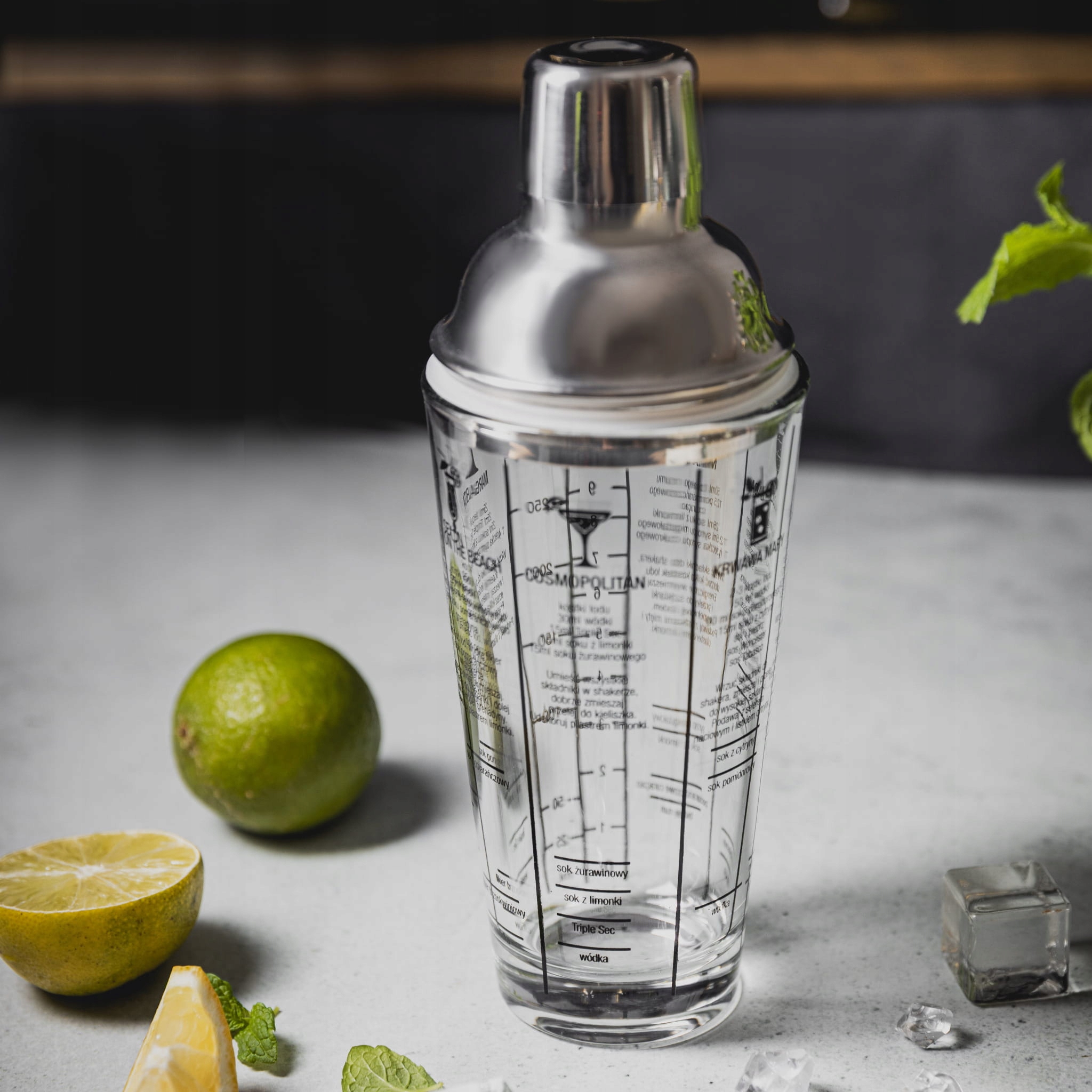 - Оснащен рецептами коктейлей на польском языке и мерным стаканом в унциях и мл.
