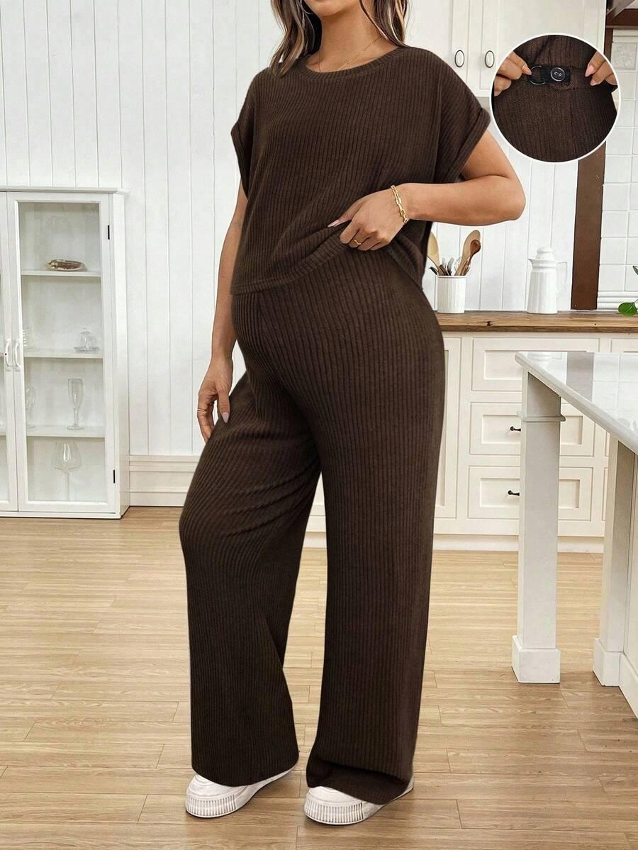 SHEIN КОРИЧНЕВЫЙ КОМПЛЕКТ ДЛЯ беременной БЛУЗКА БРЮКИ LRE S04__S