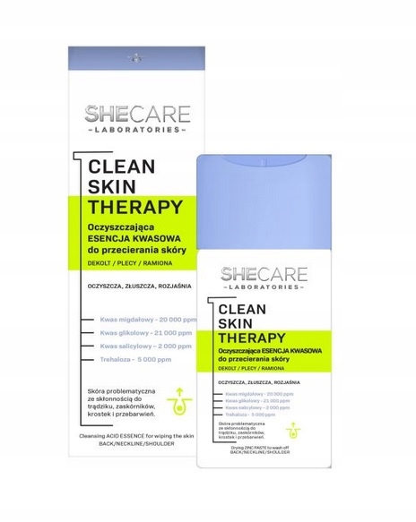 Shecare Cleansing Acid Essence - идеальное решение для людей, которые хотят позаботиться о чистоте и здоровом внешнем виде кожи на вырез, спине и плечах. Формула сущности, основанная на эффективных кислотах, мягко отшелушивает мертвую кожу, открывает поры и предотвращает недостатки.