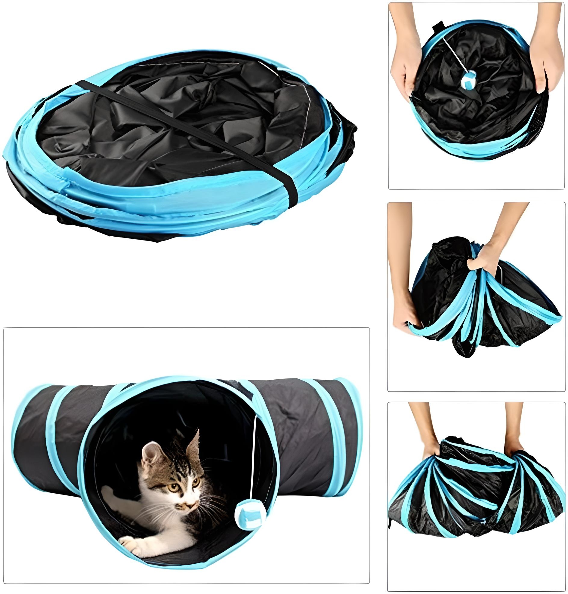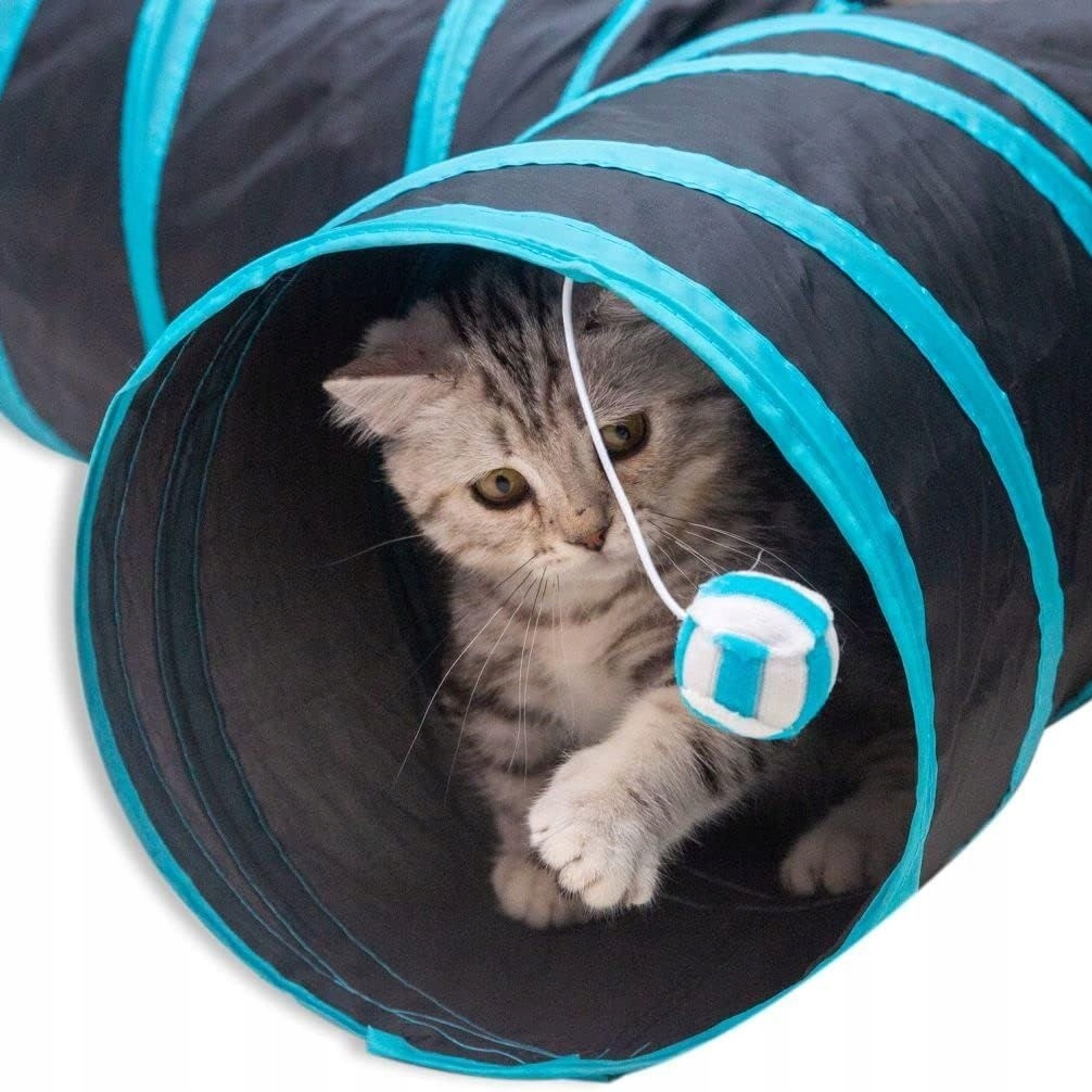 - Прочная конструкция : туннель изготовлен из высококачественного полиэстера, а его стальный скелет обеспечивает стабильность и длительное использование. Шелеевой материал особенно привлекает внимание кошек и стимулирует их естественные охотничьи инстинкты. Благодаря этому туннель идеально подходит для игры с большим количеством кошек - каждое животное найдет свой вход или сможет скрыть и наблюдать за окном через окно. Этот дизайн стимулирует инстинкт охоты, поощряя динамическое и интерактивное веселье. Туннель предоставляет укрытие, место для игры и отдыха, что делает его универсальным дополнением к каждому дому. Практические ремни, которые, в дополнение к закреплению туннеля после складывания, также позволяют подключить несколько туннелей в одну большую структуру. Благодаря этому вы можете создать более обширную и разнообразную среду для игры для своего питомца!