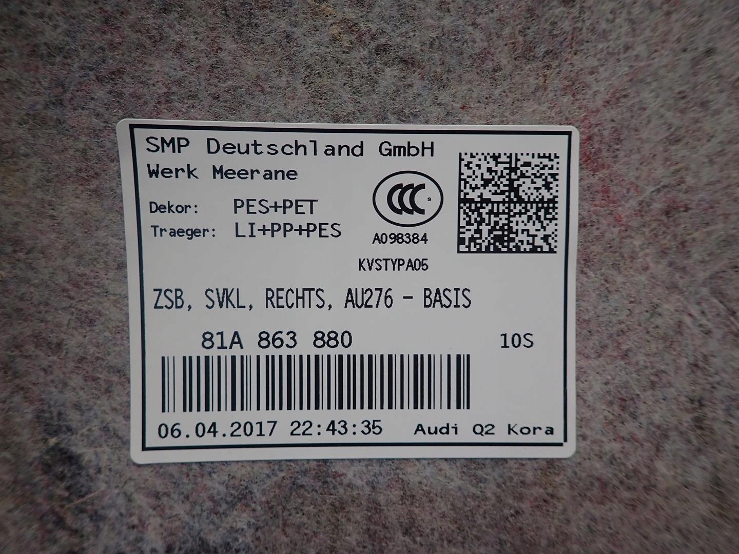 Боковины багажника, полка, крышка AUDI Q2 2016- 82A