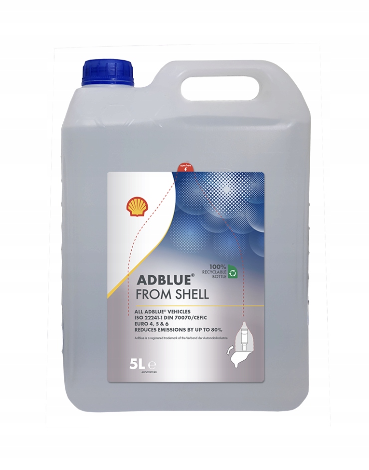 Безопасно для выхлопных газов. система: SHELL AdBlue соответствует всем стандартам качества ISO 22241, обеспечивая безопасность системы SCR и каталитических нейтрализаторов в дизельных автомобилях.