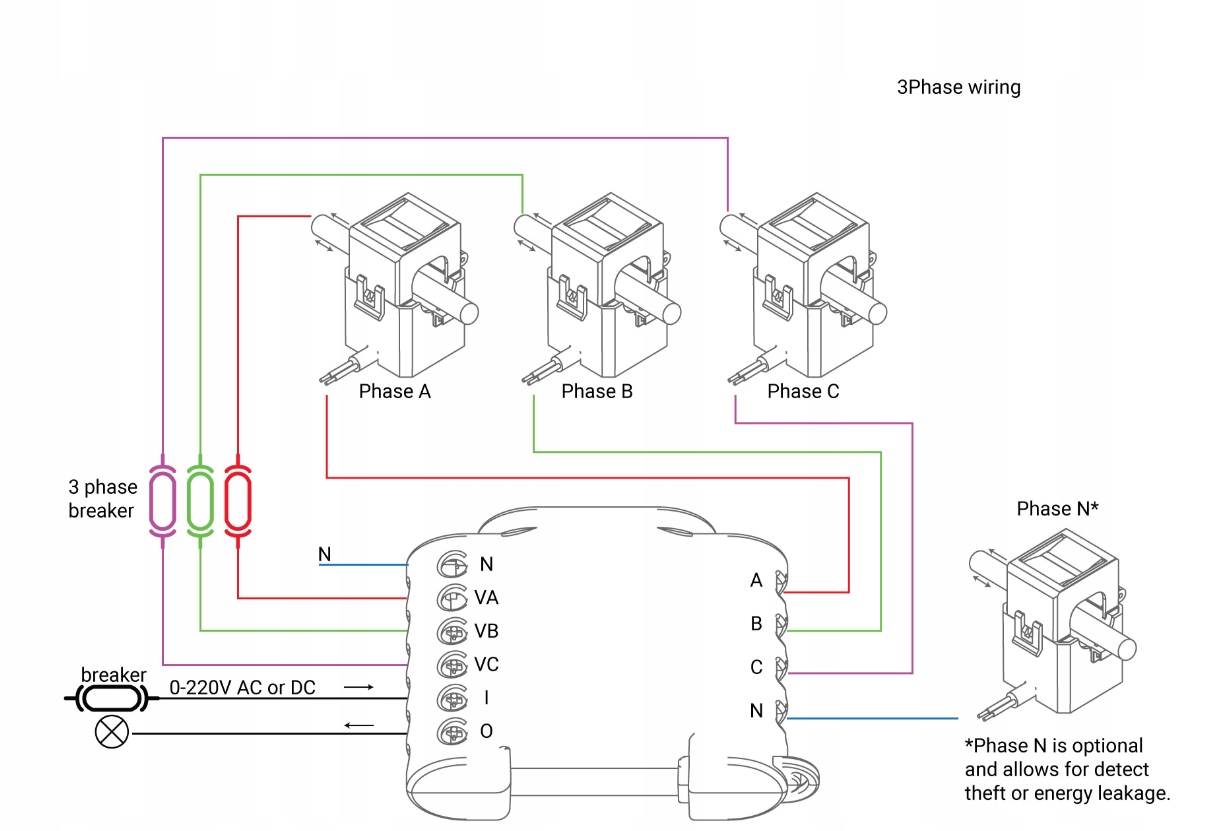 - Защита от кражи энергии. Контролируйте потребление энергии в реальном времени для каждой фазы и сравнивайте его с нейтралью, чтобы узнать, не крадет ли кто-то электрическую энергию.
