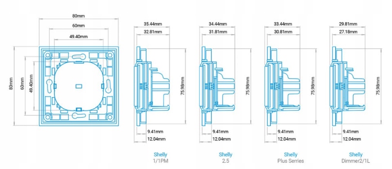 Каждый настенный переключатель с интеллектуальным реле Shelly поставляется с соответствующими держателями реле. Вы можете выбрать держатель реле, необходимый для реализации вашего проекта автоматизации.