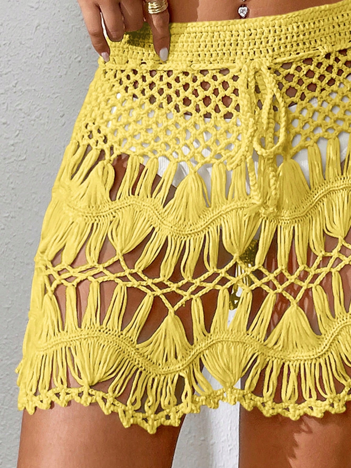 Шиин Желтая юбка для пляжа Крючков с переплетом в поясе S 61311