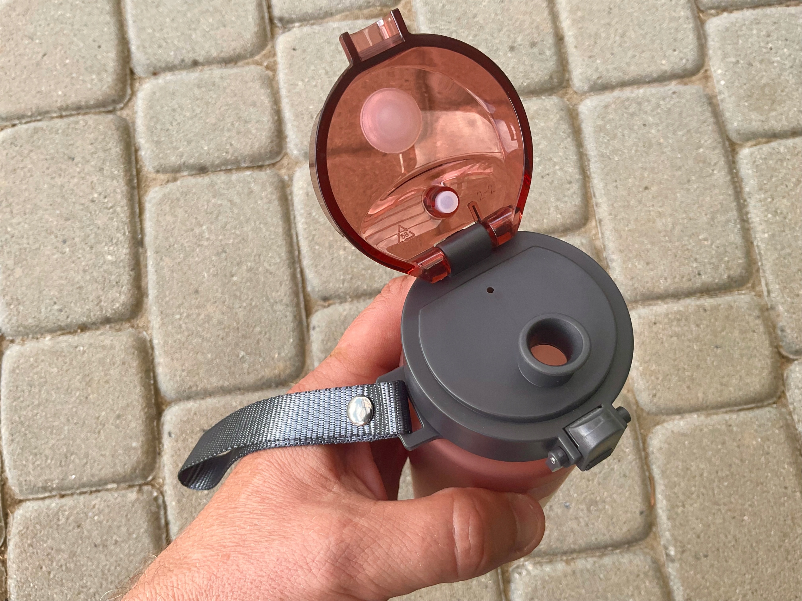 Имеет мундштук в форме трубки, закрывающийся клапаном с замком.
