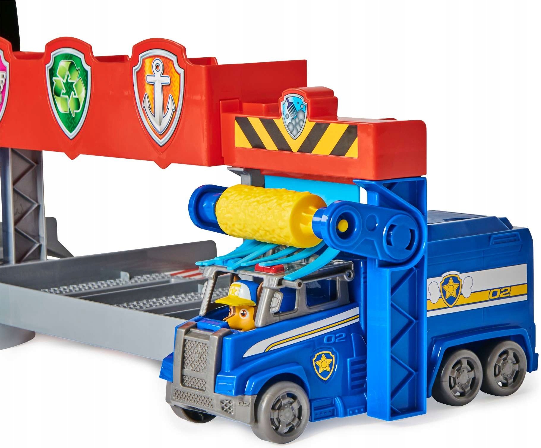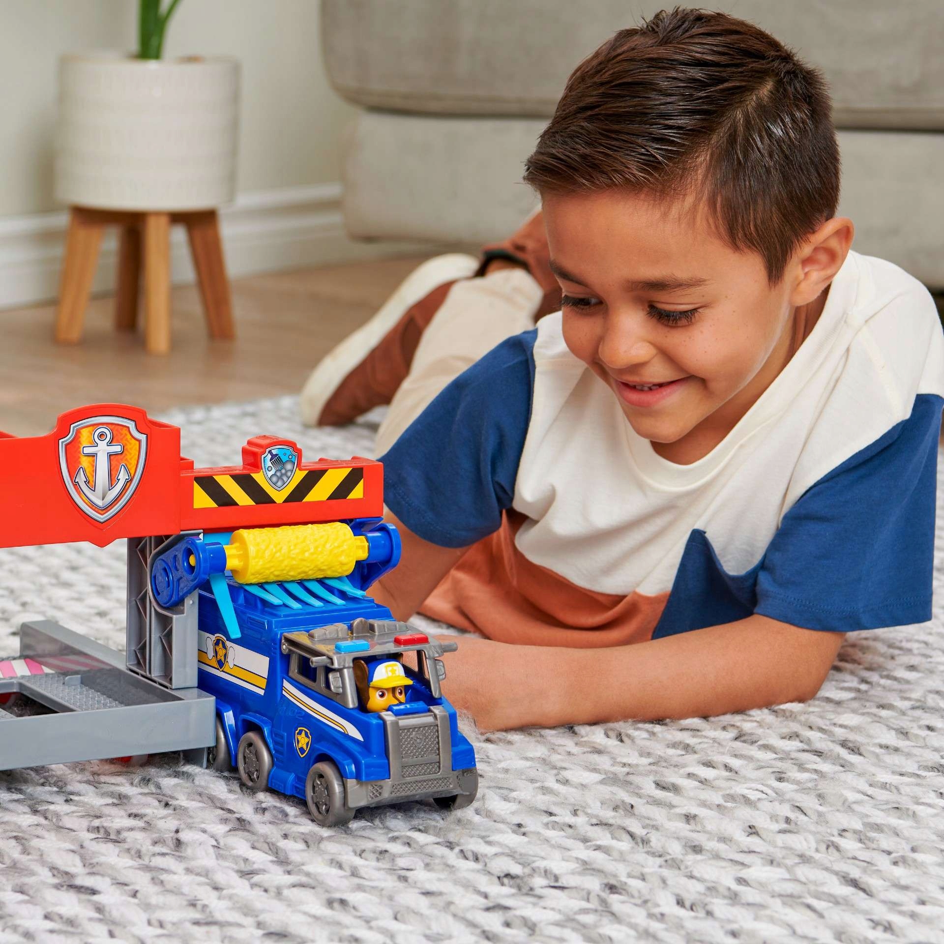 ФИГУРКА И ИГРУШЕЧНАЯ МАШИНКА ПОГОНИ: Преследуй его новая униформа Большого Грузовика! Посадите Чейза за руль, подойдите к пусковой установке, а затем нажмите кнопку в командном центре, чтобы начать действовать!