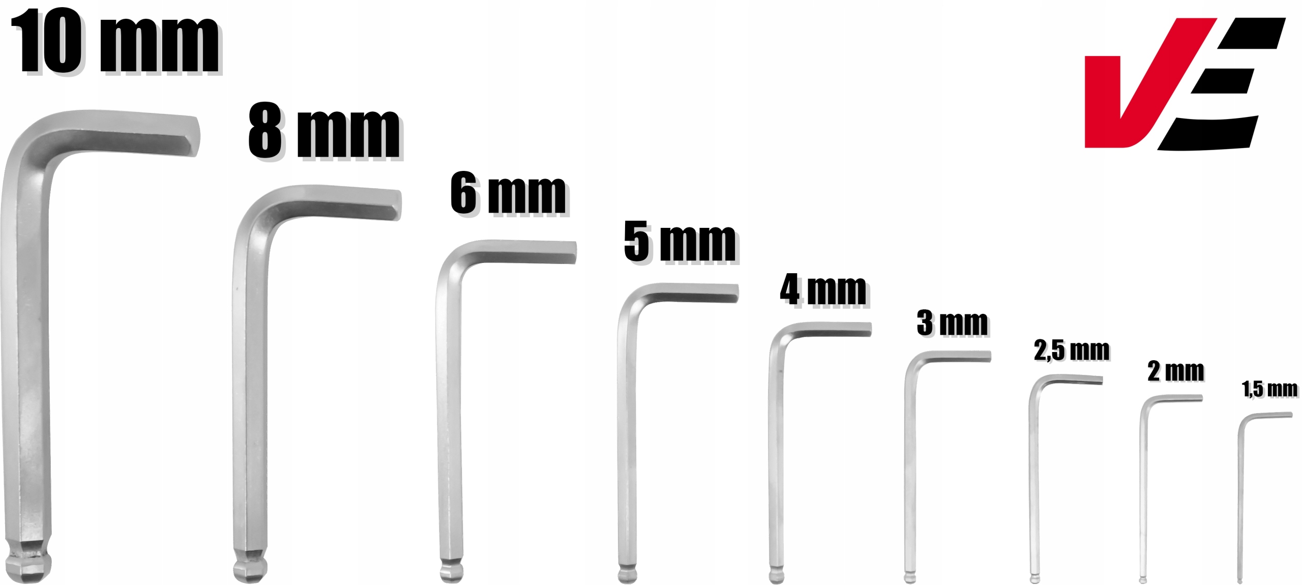 ШЕСТИГРАННІ КЛЮЧІ НАБІР ШЕСТИГРІННИХ КЛЮЧІВ 1,5-10 ШЕСТИГРІННИХ З КУЛЕЮ
