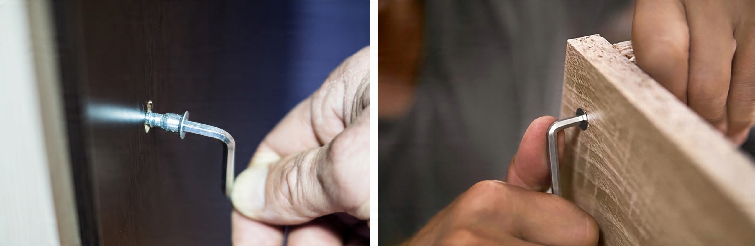 Шарик, расположенный на кончике отвертки, позволяет наклонять ось инструмента относительно оси винта, обеспечивая возможность затягивания и ослабления при угол. p>