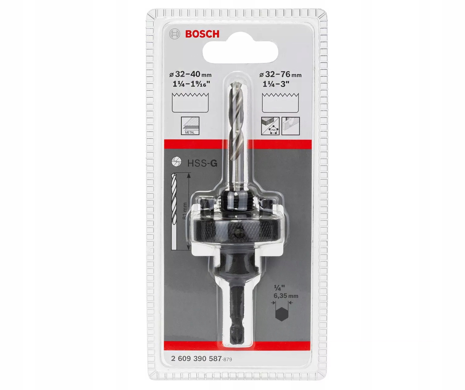 ШЕСТИГРАННИЙ ПЕРЕХІДНИК 1/4" ДЛЯ КОЛЬЦЕВИХ ПИЛ 32-76мм HSS-БІМЕТАЛ BOSCH