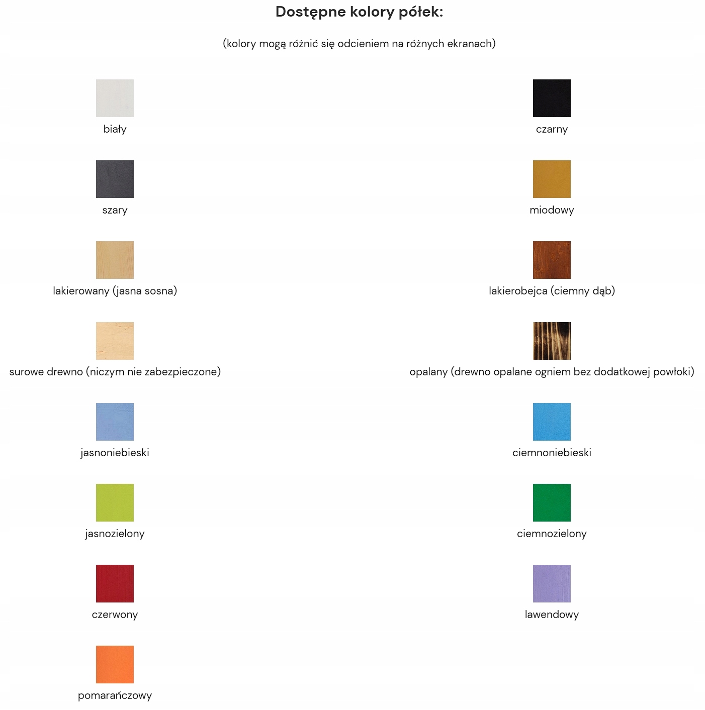 Наше предложение отличается качеством изготовления - мы используем только натуральное дерево (не фанера или мебельная доска), которая обрабатывается вручную. Мы делаем полки в соответствии с заказом клиента, поэтому мы предоставляем время доставки до 7 дней, но обычно время доставки намного короче.
